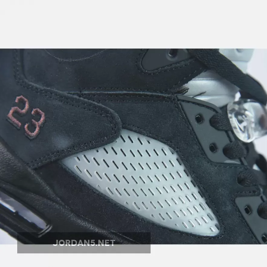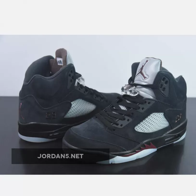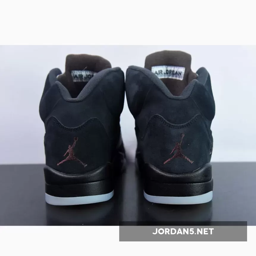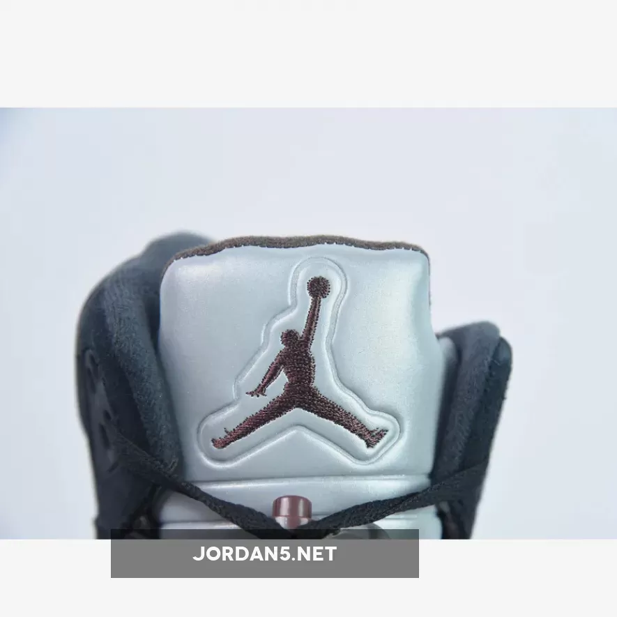 The pair reveal a suede tooling for the majority of the upper, accented with the brand’s signature burgundy. The A Ma Maniére x Air Jordan 5 Black comes with Jumpman branding on the right tongue and A Ma Maniére on the left tongue.
