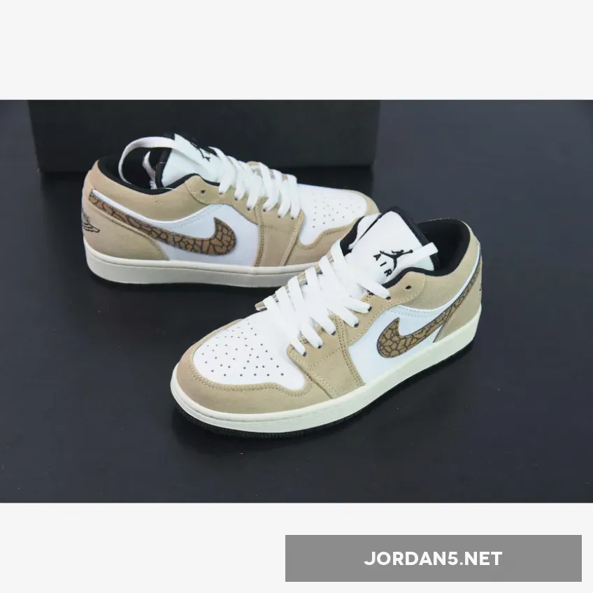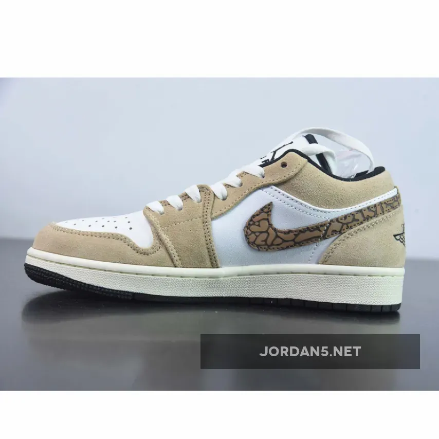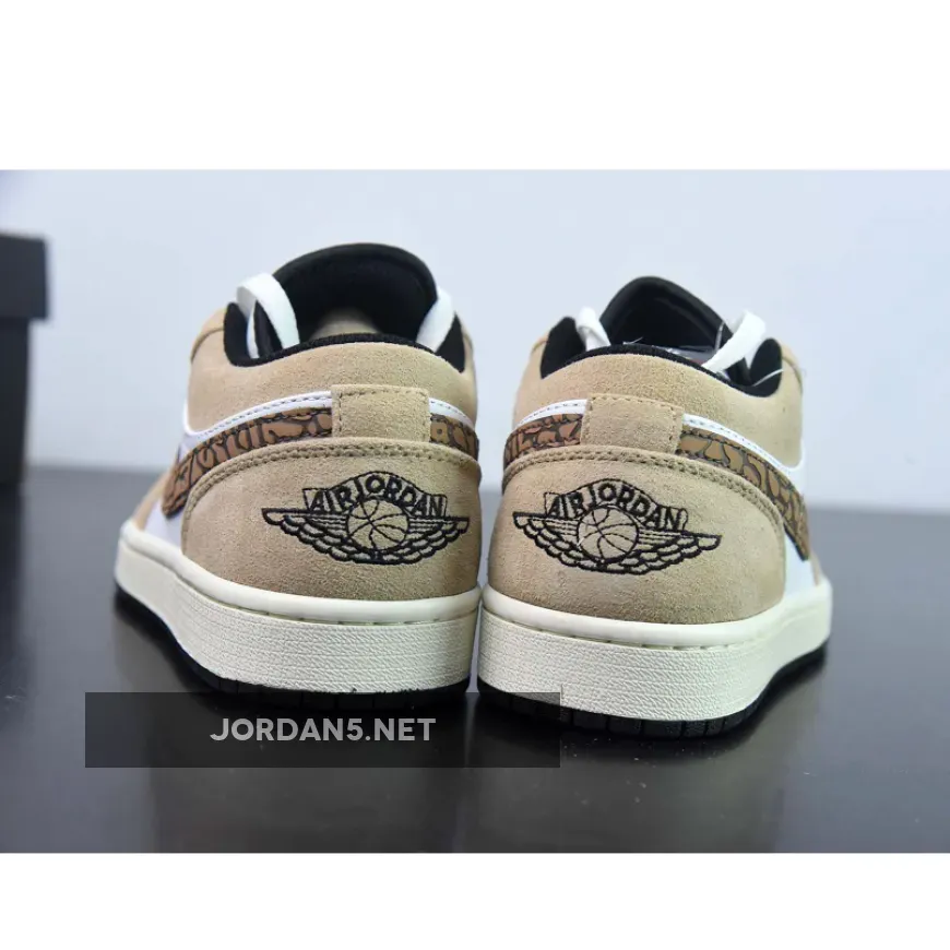 The Air Jordan 1 Low SE Brown Elephant is a low-top take on the eclectic elephant print which lands on the signature Swoosh appliqué.