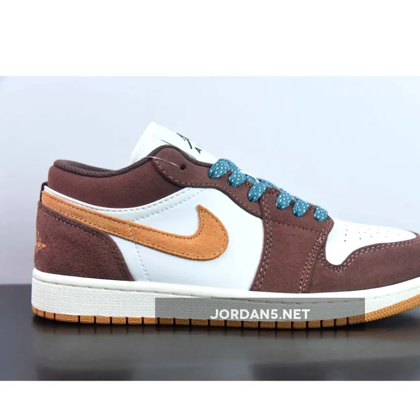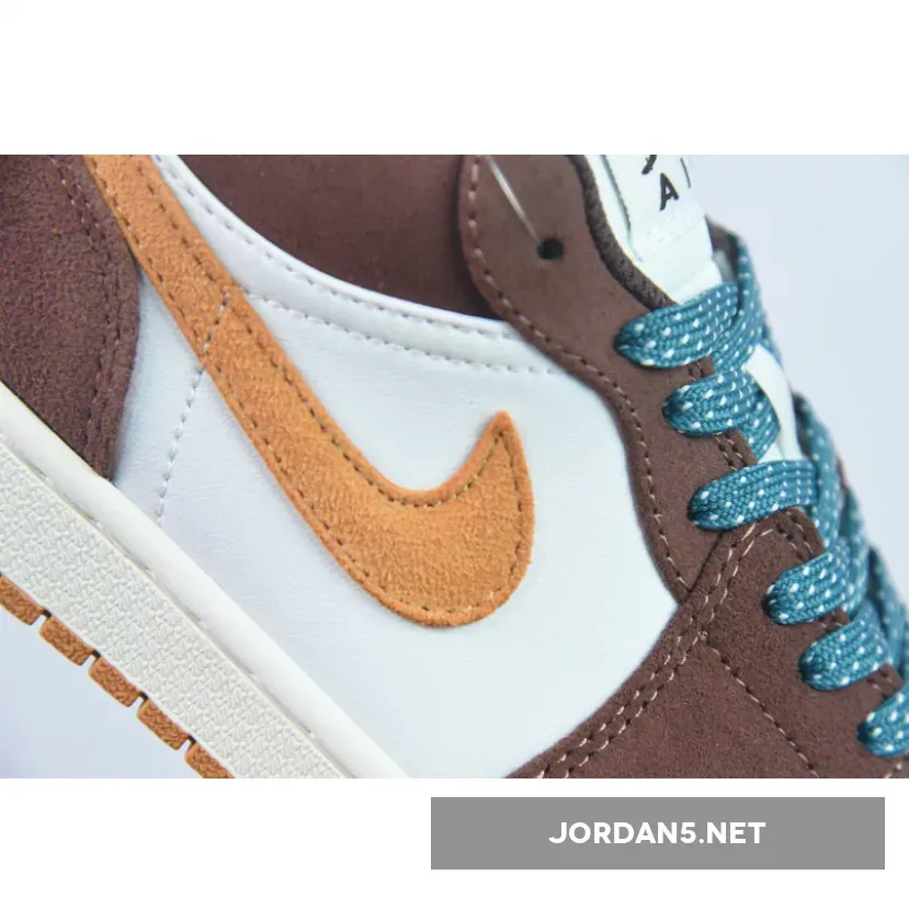 This new colorway of the Air Jordan 1 Low comes dressed in a Cacao Wow, Twine, Sail, Geode Teal, and Luminous Green color scheme.