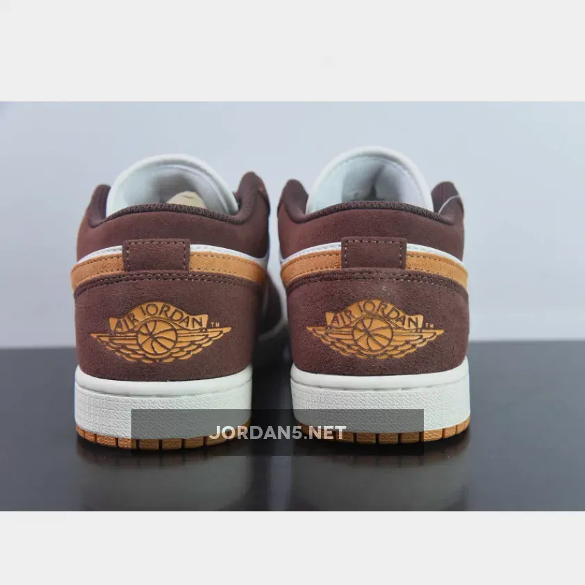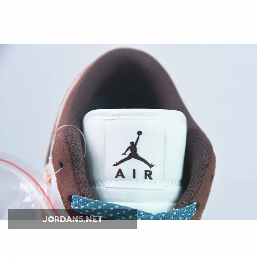 This offering of the Air Jordan 1 Low comes constricted in a mix of leather, hairy suede, and mesh materials. The hairy suede signature profile Swooshes on both the medial and lateral mid-panels are a lighter tan shade. Geode teal joins the mix via the laces, bringing a splash of colour to the neutral backdrop.