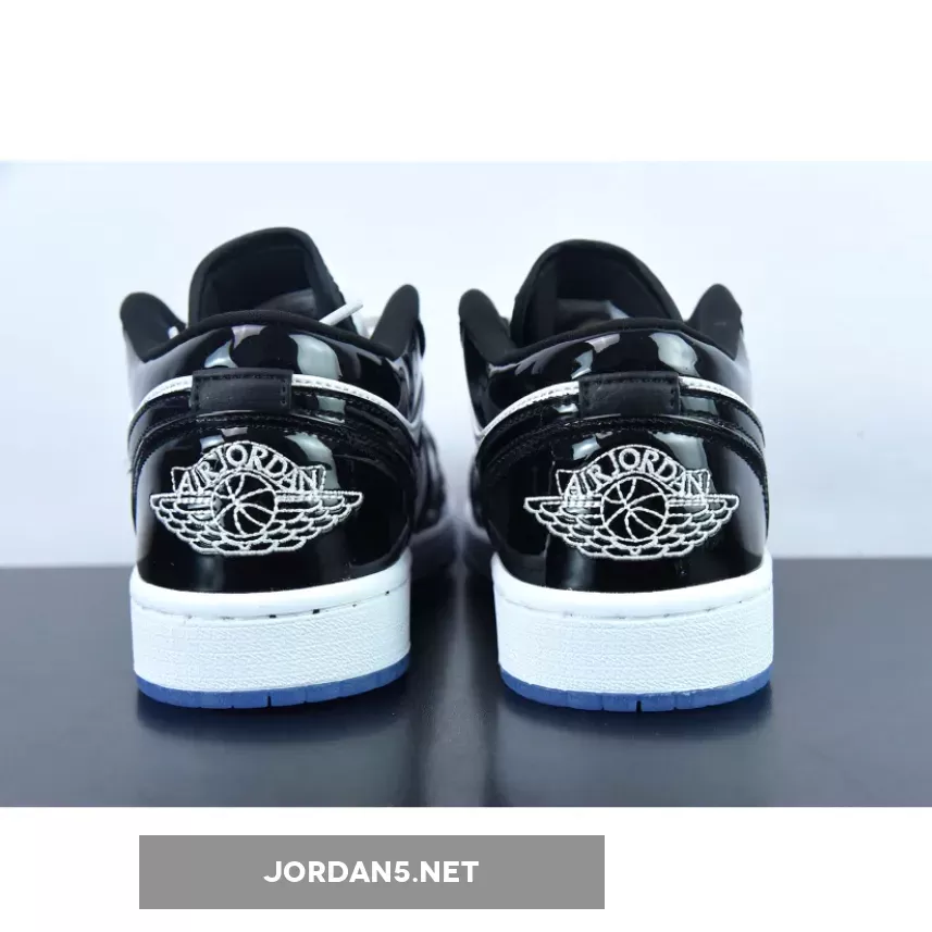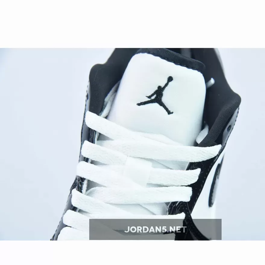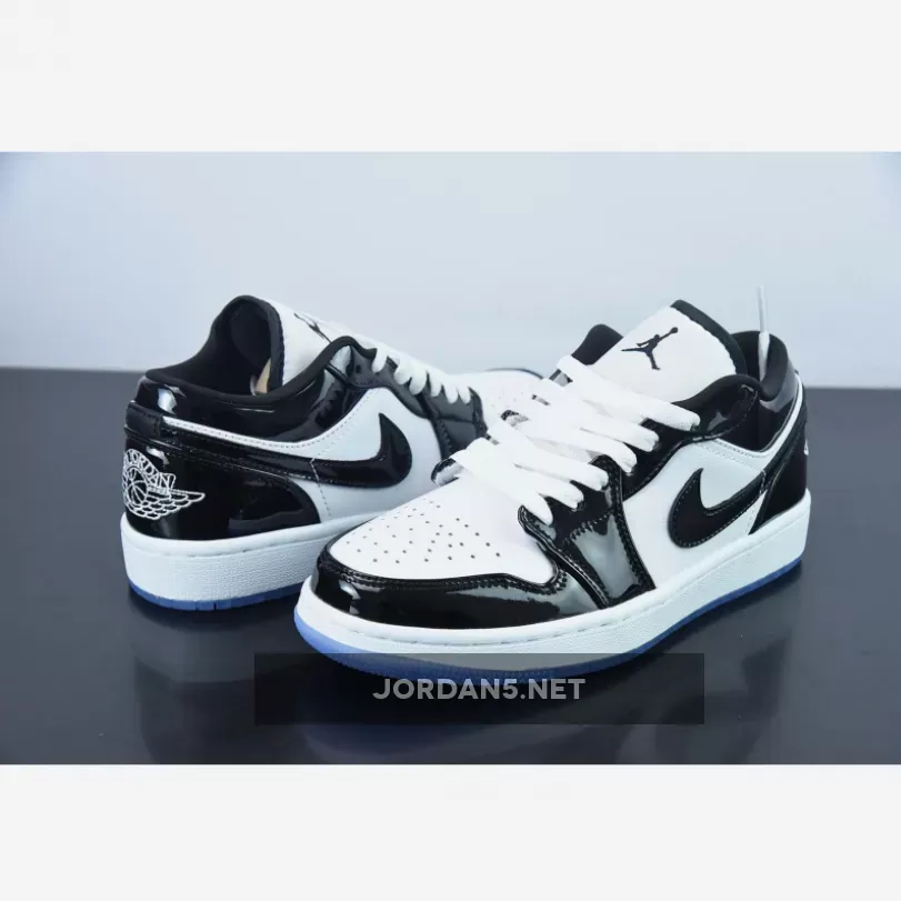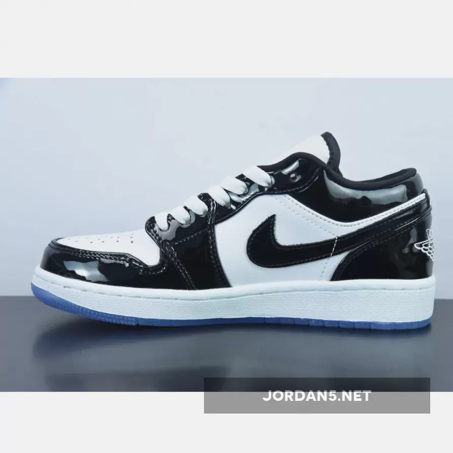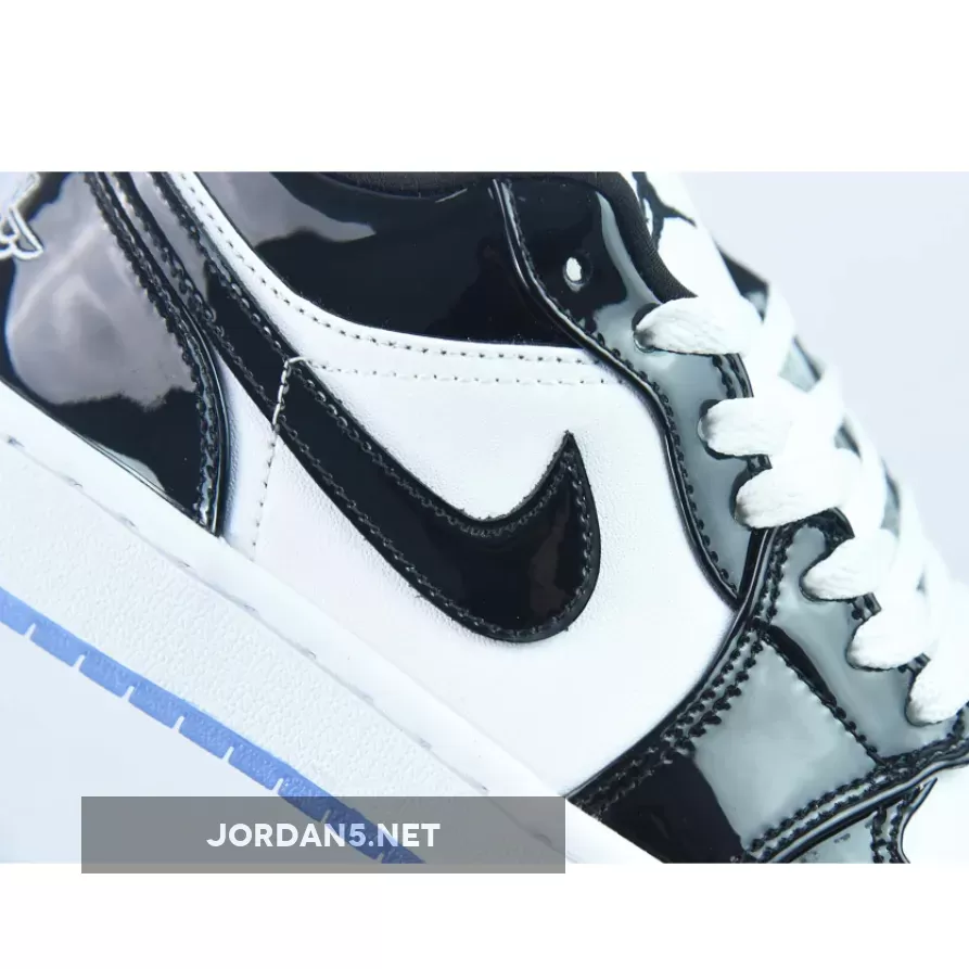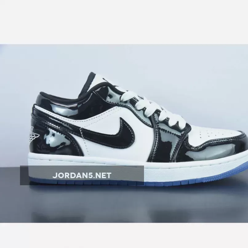 Sleek but eye-catching, the Air Jordan 1 Low Concord White Black features a simple monochromatic design that’s truly versatile. It starts with a smooth white leather base which covers the quarters and perforated toe. Meanwhile, shiny black patent leather overlays add reinforcement and a stylish flair. A modern classic.