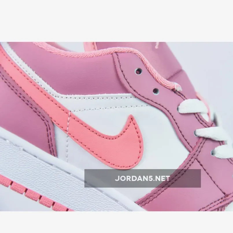 The Air Jordan 1 Low Desert Berry/Coral Chalk-White offers a sleek, stylish silhouette. The combination of Desert Berry and Coral Chalk provides a unique and eye-catching color scheme. The leather overlays and mesh tongues create a premium look and feel. Overall, these shoes are definitely a must-have for any sneaker enthusiast!