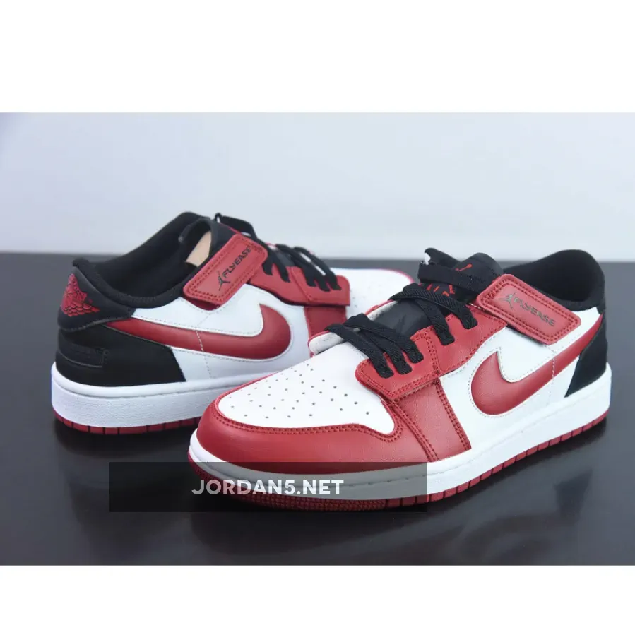 This new Gym Red iteration of the Air Jordan 1 Low FlyEase comes dressed in a color scheme and color blocking that will have some of us thinking about the beloved Jordan 1 Chicago. Gym Red is seen on the mudguard, lace overlays, and Swoosh, with Black seen on the nylon tongue, heel counter, and heeltab. The Wings logo is seen on the heel in Gym Red as well as on the Jumpman on the tongue tag and the Jumpman and FlyEase branding is seen on the lateral side. White and red meet again on the midsole and outsole to complete the aesthetic assemblage.