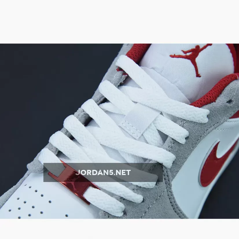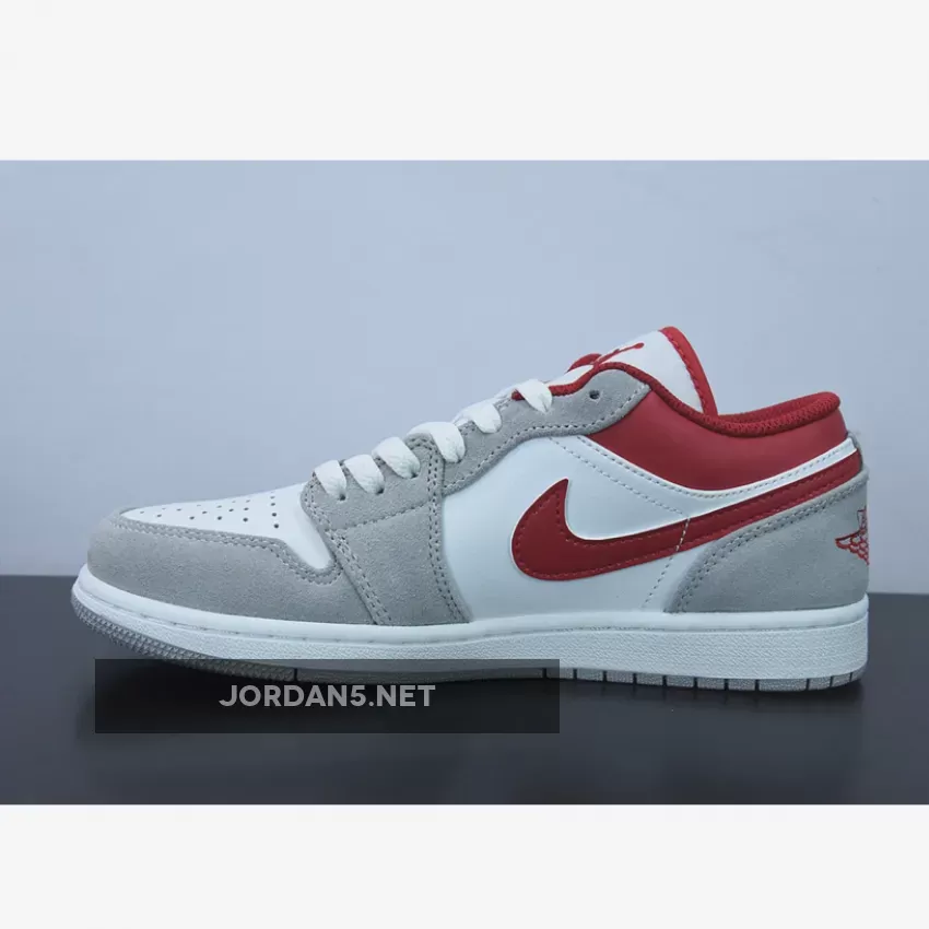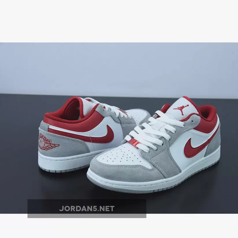 Clean & sleek! 🔥 Love the grey suede & red accents on these Air Jordan 1 Lows. Perfect for everyday kicks. 💪 #AJ1LowGreyRed #NikeSneakers