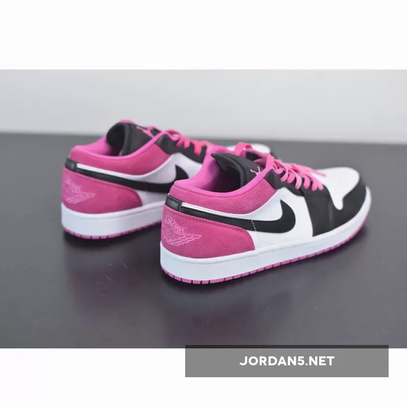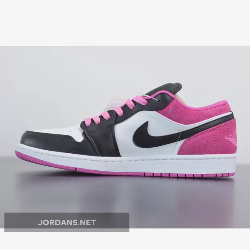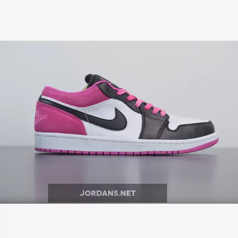This low-top Air Jordan 1 comes highlighted with White leather across the upper while Black covers the overlays and White runs across the midsole. In addition we have Magenta placed on the tongue, liner, laces, perforated suede that wraps the heel and rubber outsole.
