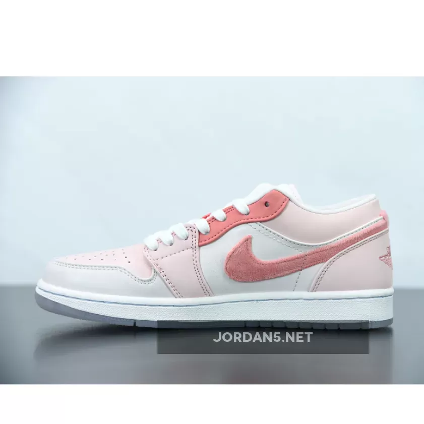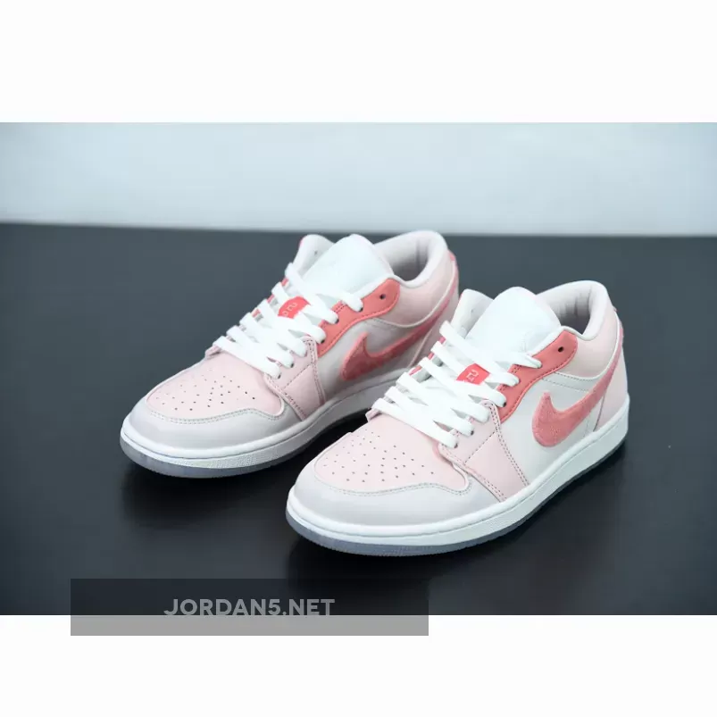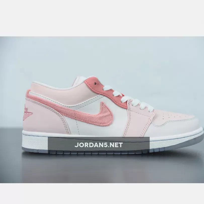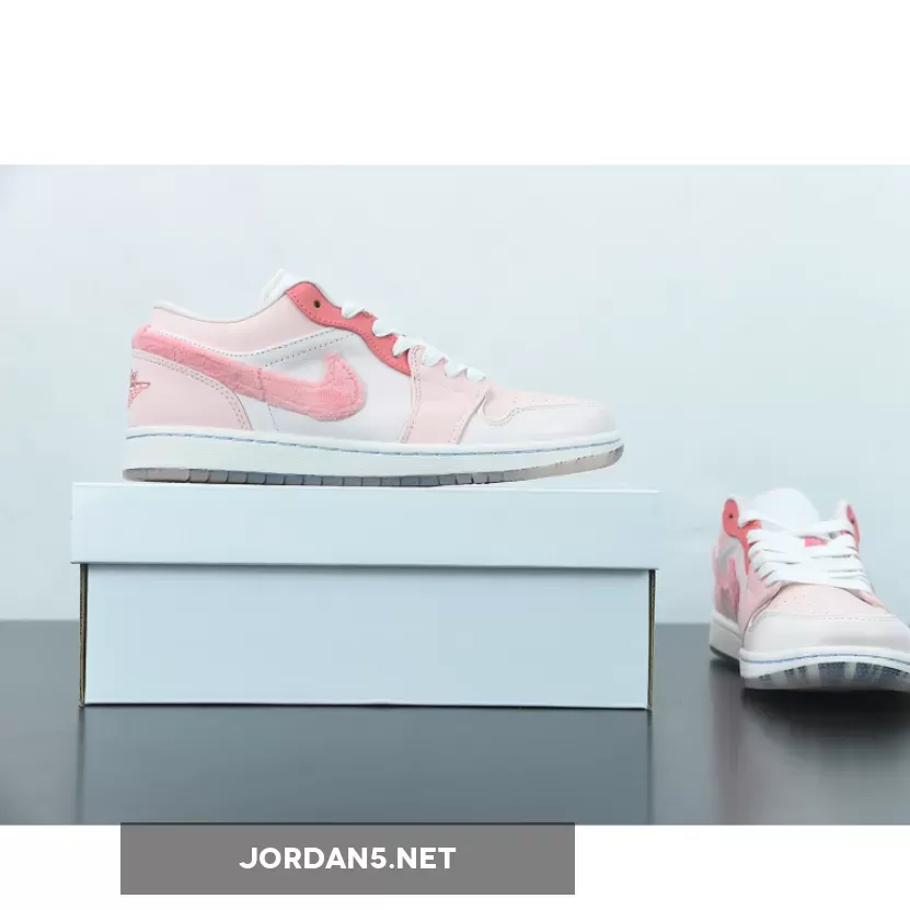 This anime-themed low-top Air Jordan 1 features a clean White leather upper paired with Pink hues used on the overlays as well as its hairy faux fur Swooshes on the sides.