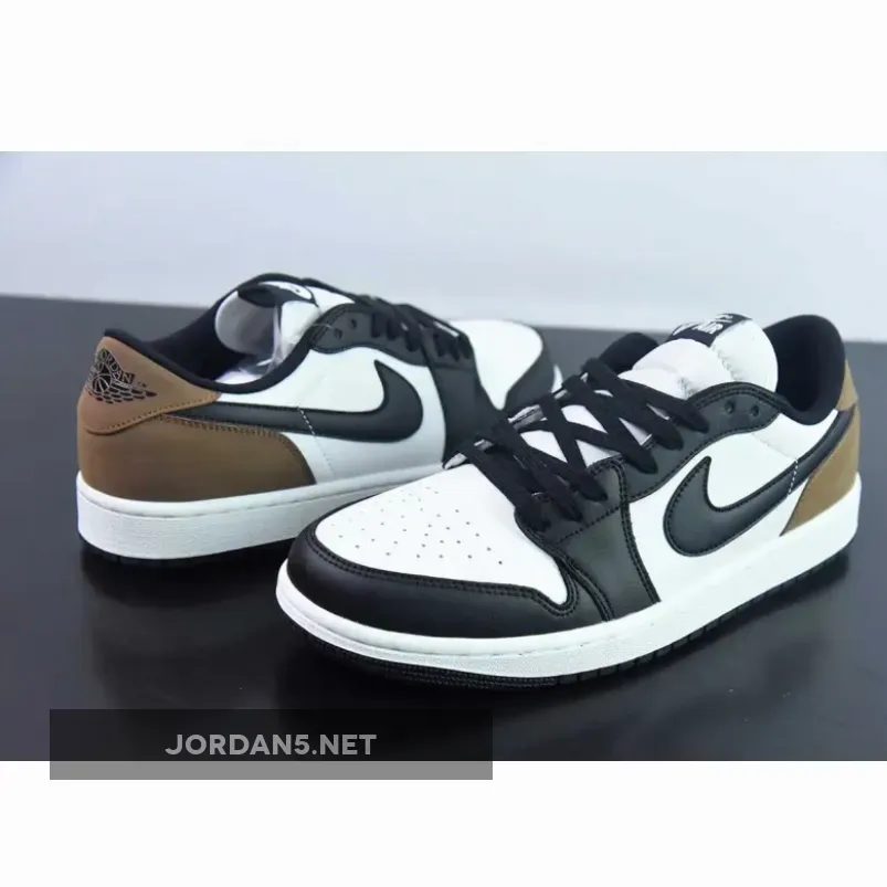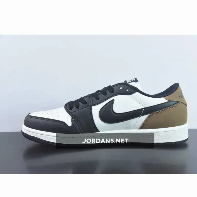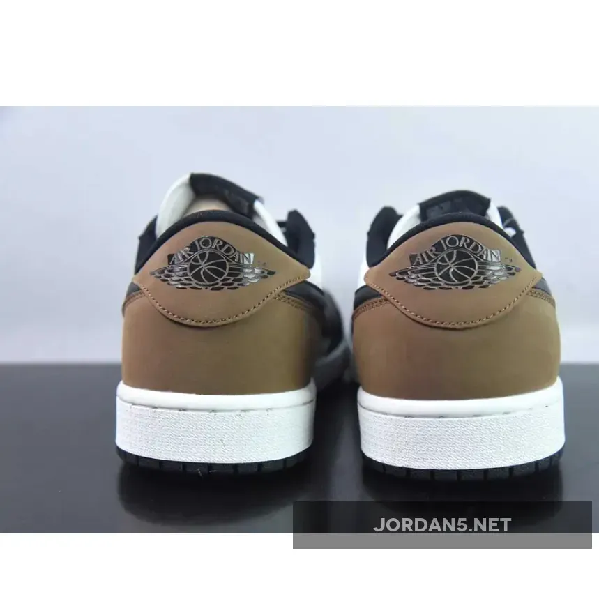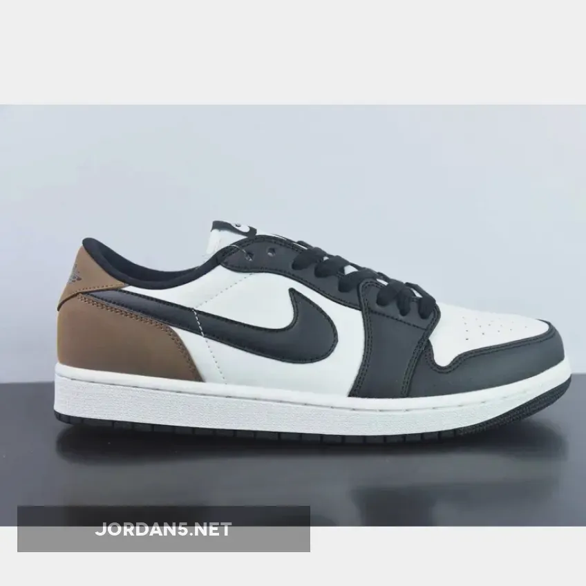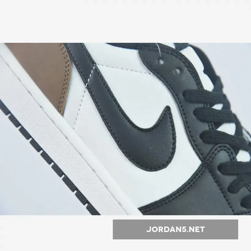 With its White, Black, and Palomino colorway and a design reminiscent of the 2020 “Mocha” Air Jordan 1 High OG, this low-top shoe offers a fresh look with its distinctive accents and branding.