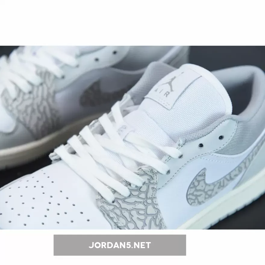 While this low-top Air Jordan model boasts the iconic elephant pattern in a neutral grey hue on overlaying panels across the silhouette, the white leather base accentuates the pair giving off a similar vibe to the luxurious Dior x Jordan 1 collaboration. Nike’s signature Swoosh branding then shoots elegantly across the lateral and medial sides paired up with MJ’s Jumpman logo on the tongue and wings logo on the back heel to maintain traditional Air Jordan detailings. Underfoot, a crisp white midsole is elevated with a smoke grey outsole to perfectly round off the look.