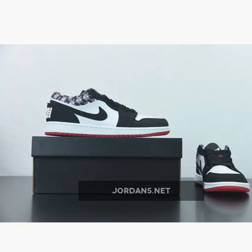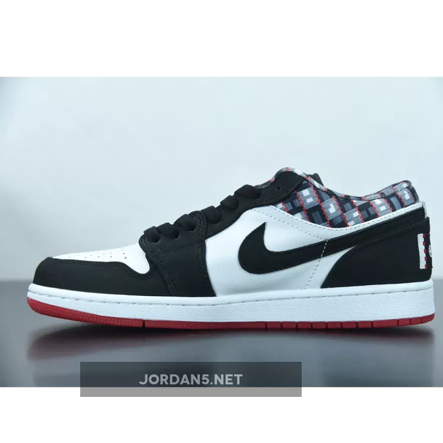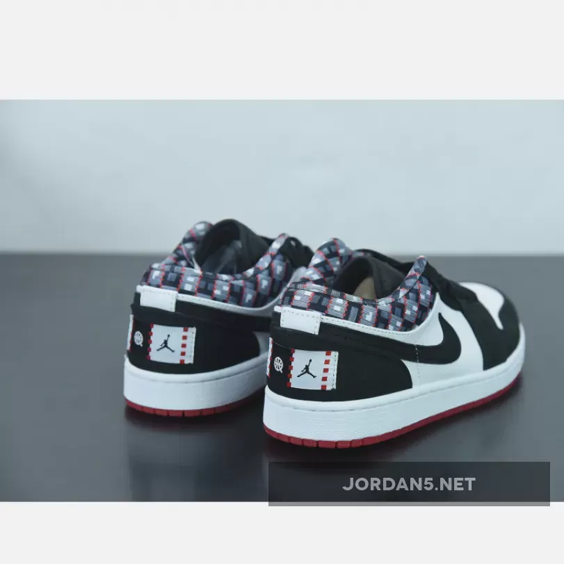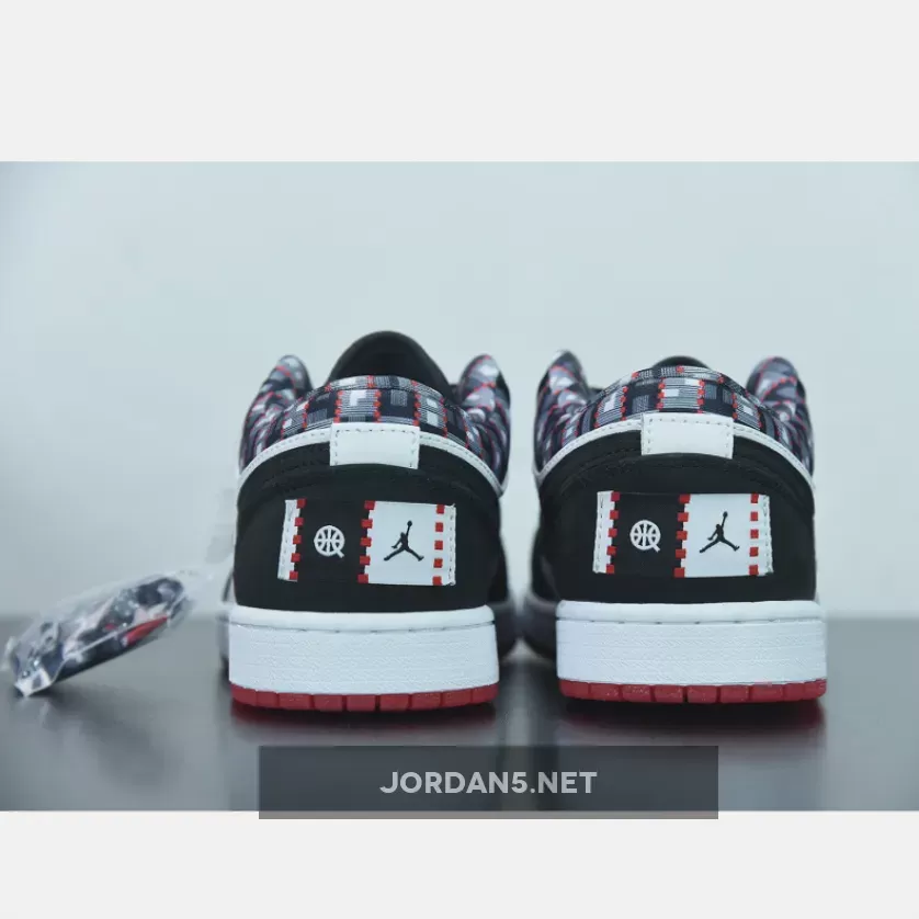 Clean and classic! 😍 Loving the West African-inspired design on these Air Jordan 1 Lows. 🔥 Perfect blend of white and black, with a pop of red. 💫 #Quai54 #AJ1Low #NikeSneakers