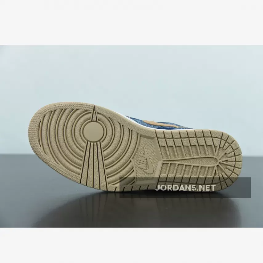 The indigo-dyed textile itself leads much of the charge, weaving its way atop the toe box, tongue, and mid-panel with a lightly distressed finish. The thick nubuck laid over top opts for a darker navy shade, while the details elsewhere are dressed in tan, mimicking the leather patch often stitched onto a pair of jeans. This is put forward in a number ways: through the contrast stitching of the overlays as well as the color of the lining, tread, and suede Swoosh. What’s more, the Jumpman accents the tongue in red, which ostensibly celebrates the tab found on 501s and the like.
