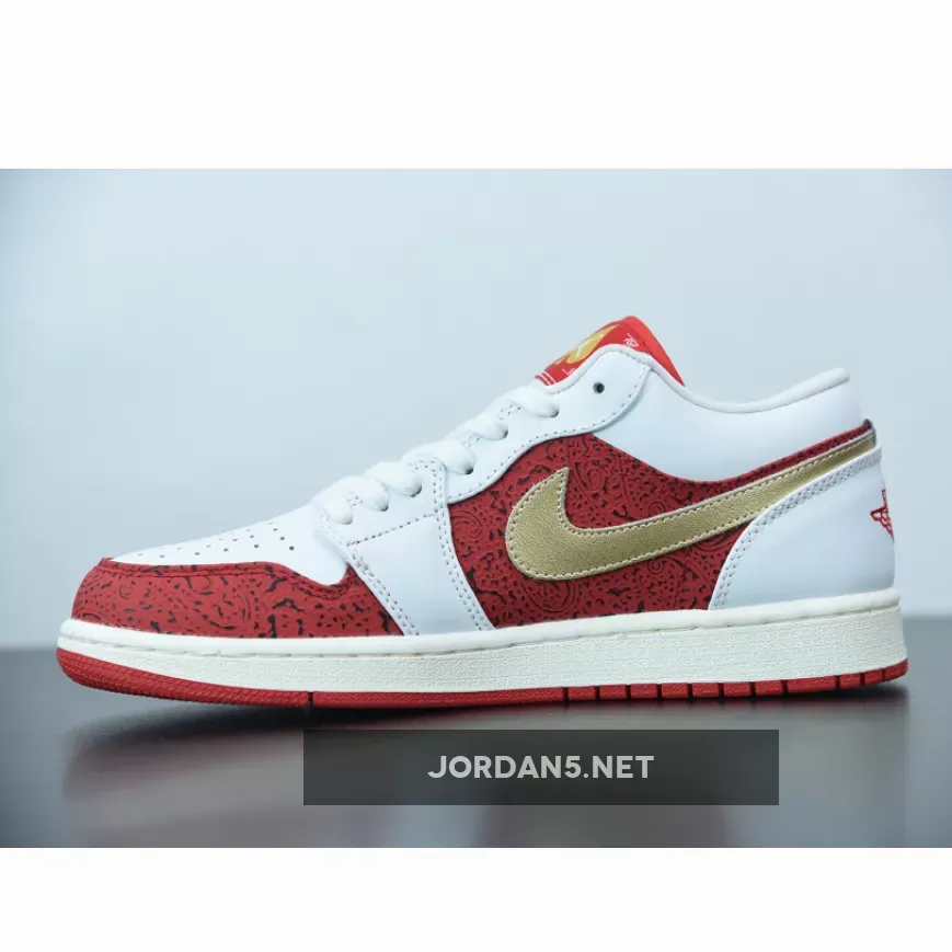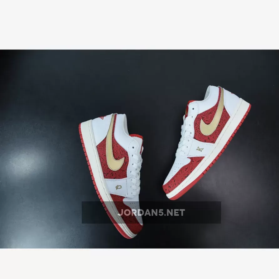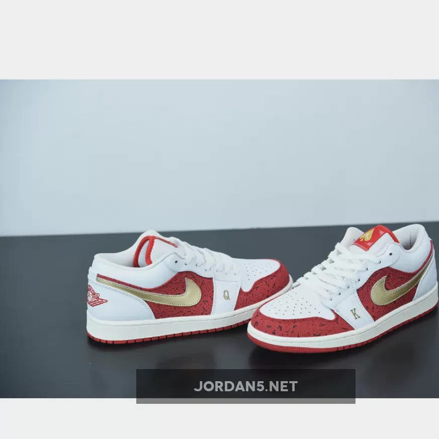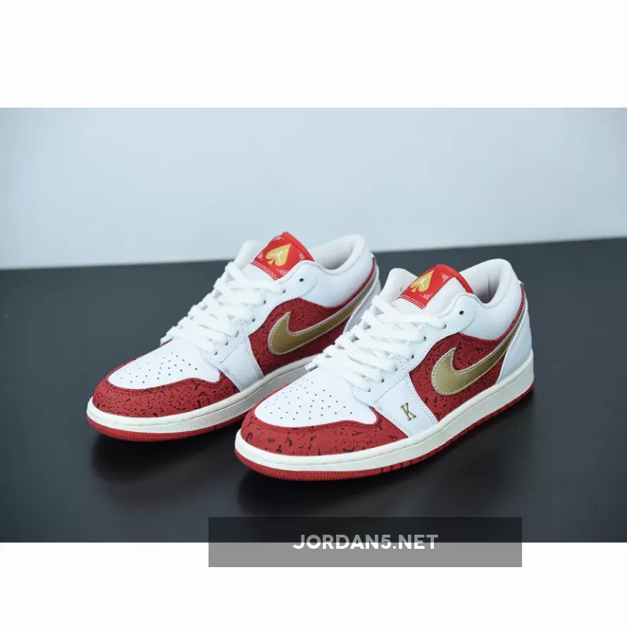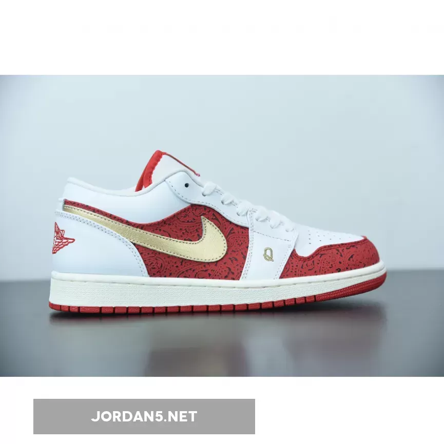 If you’re still looking for new additions to your Jordan collection, then look no further as the Jordan 1 Low Spades is everything you need. Ever since Michael Jordan’s first-ever signature basketball shoes released in 1985, the Jordan 1 remained a relevant style to basketball players and sneakerheads alike up until recent years. As for the latest offering from Jordan Brand and Nike, this low-top iteration is undeniably one of the cleanest we’ve seen in a while so read on for a closer look.Working on a low-cut profile for an easy-to-style approach, these work atop a plush leather construction for a premium look. Across the shoe, you’ll see a red base accented with paisley pattern detailing then embraced with pristine white overlays that wrap around the toebox, eyestays, and rear regions including the collar for a contrasting touch. Metallic gold tones then coat the Jumpman spade-branded tongues, sidewall Swoosh logos, and the letters K and Q, which stands for the King and Queen cards, are finely embroidered onto the lateral heels alongside MJ’s wings motif at the rear to complete the theme of playing cards. Don’t forget to use our Jordan 1 size guide so you know how they fit and keep it locked in right here at Our Store Supplier for all the latest Jordan 1 release dates.