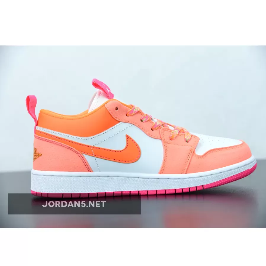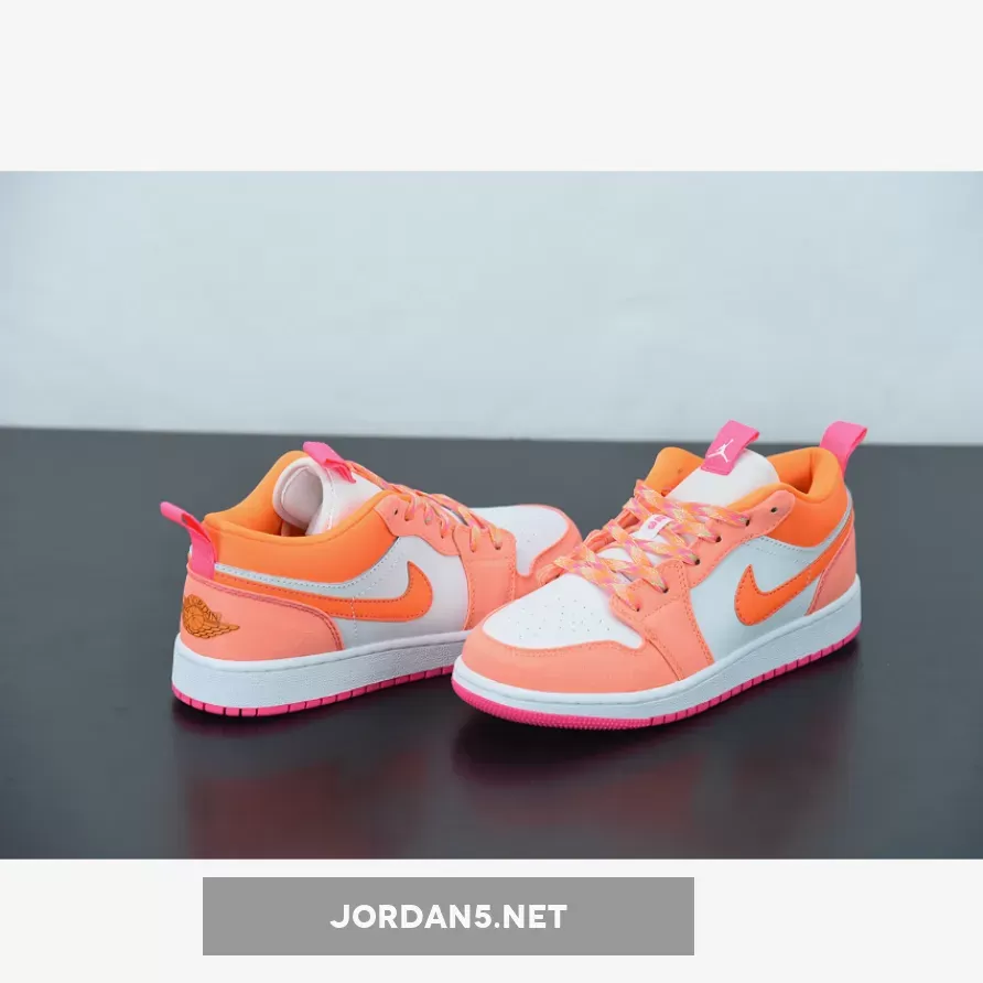 Fresh AF! 🔥 The Air Jordan 1 Low Utility GS Pink White is a vibe. Love the youthful colorway and the mix of pink, orange and white. Super comfy and stylish, would def recommend! 🤩 #SneakerGoals #Nike #AirJordan #GS #PinkWhite #Fashion #Style #NewRelease 🎉