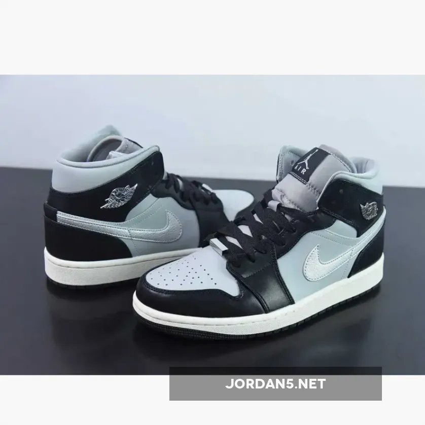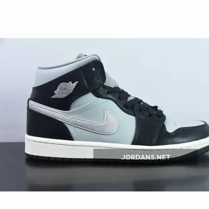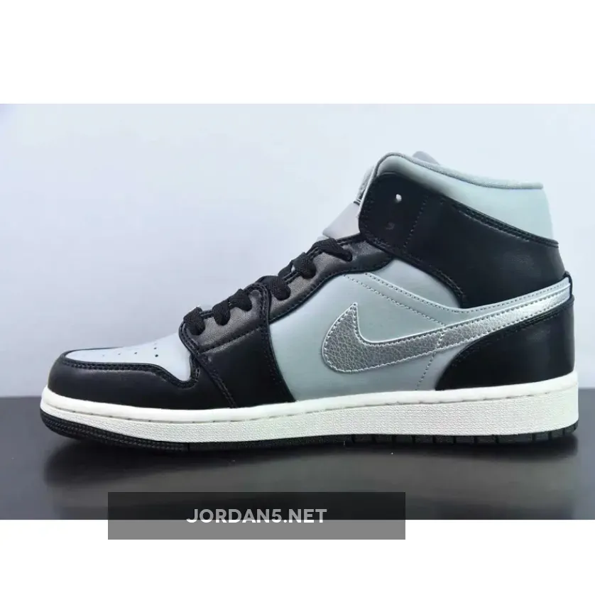 The shoe showcases a sleek ensemble of colors, including Black, Metallic Silver, Light Smoke Grey, and Sail. Crafted with luxe full-grain leathers and mesh lining, the AJ1 Mid SE “Black Chrome” provides both comfort and durability. The Light Smoke Grey leather upper creates a stylish tonal backdrop, while the striking Black leather overlays add glossy contrast with a patina-like finish. Notable additions include the Chrome Wings on the lateral ankle and lace dubrae, adding a touch of hardware-inspired flair. The vintage charm is further enhanced by the Sail midsole, complemented by a Black rubber outsole that completes the design.