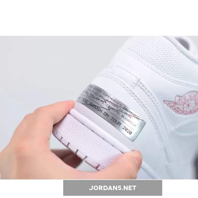 Solid design with premium white leather & mesh blend. Euro-inspired details & Nike Air tech make these J1 mids a must-have for any sneakerhead’s wardrobe. #AirJordan1 #EuroTour #SneakerGameStrong 💪