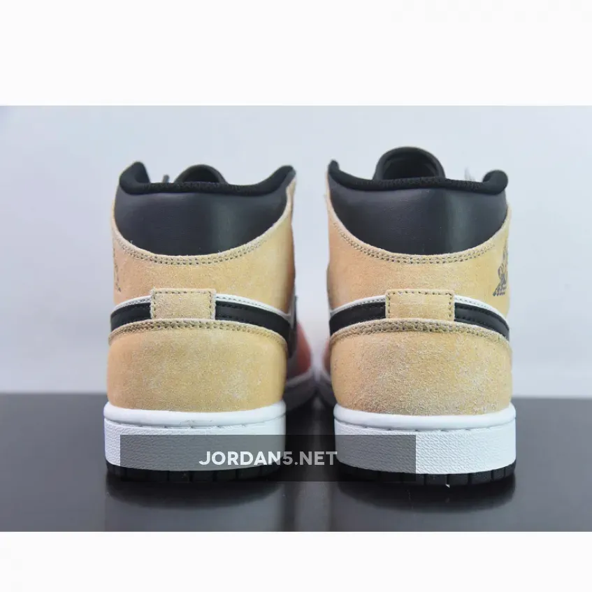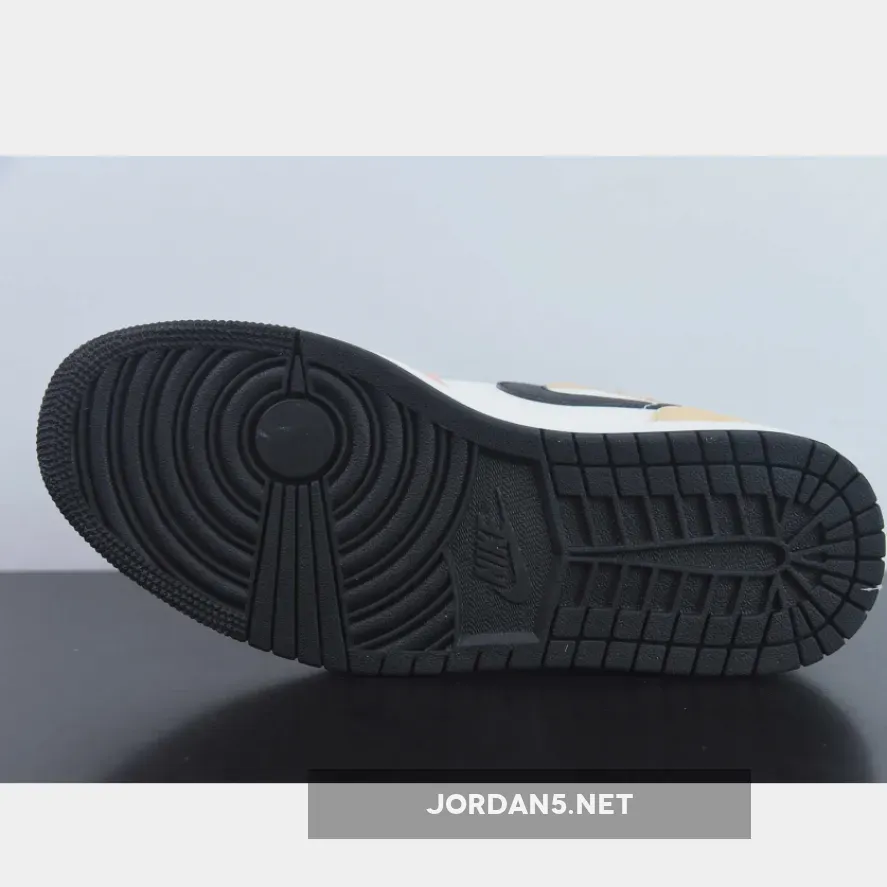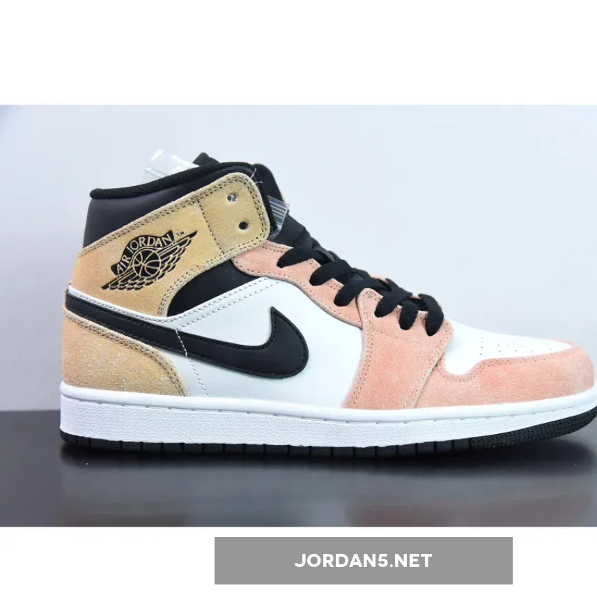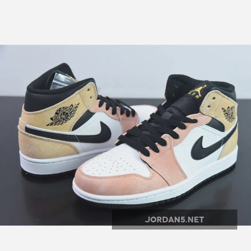 the pair possesses a dusk-like graduation from orange suedes at the toe to golden tints in the rear. It’s met in the middle — and at the toe — by bright white leathers, with bold blacks in support at the collar, Swoosh overlays, liners, laces, and tongue. The embroidered Jumpman logos on the tongues are Gold while the Wings logos on the lateral collar flaps are stamped in black. A white midsole and a black rubber outsole wrap up the look of this sneaker.