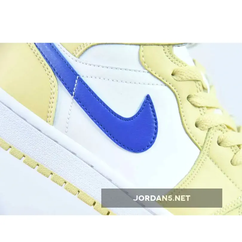 Taking on an official color makeup of Lemon Wash/Lapis-White. This offering of the Air Jordan 1 Mid comes constructed in a full leather build with mesh tongues and lining.