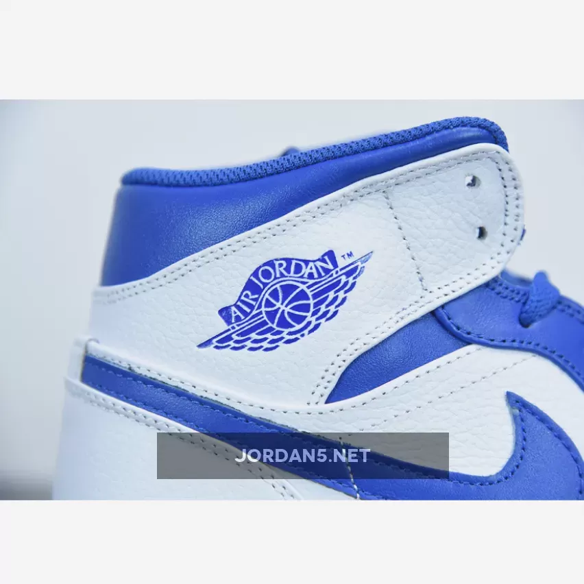 This Air Jordan 1 features a White tumbled leather upper paired with Hyper Royal Blue smooth leather overlay. Perforated detailing on the toe box, Wings logo on the ankle and Jumpman branding on the tongues and insole. Finishing off the design is a White midsole with a Blue rubber outsole.