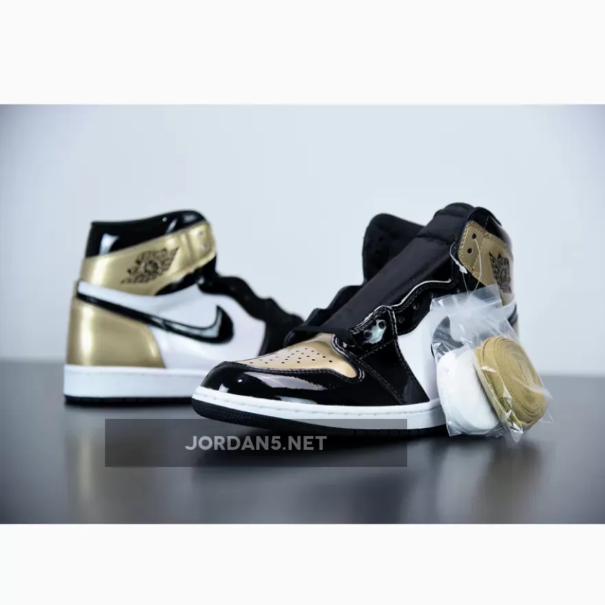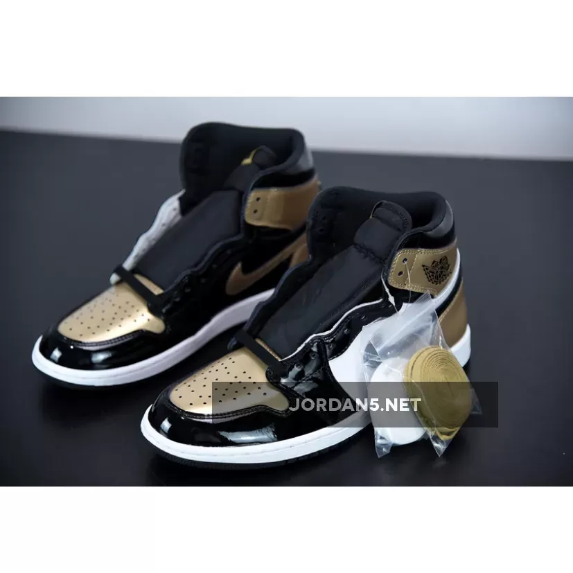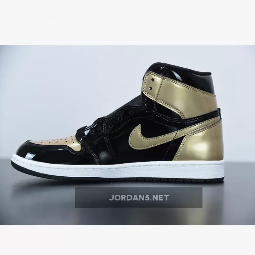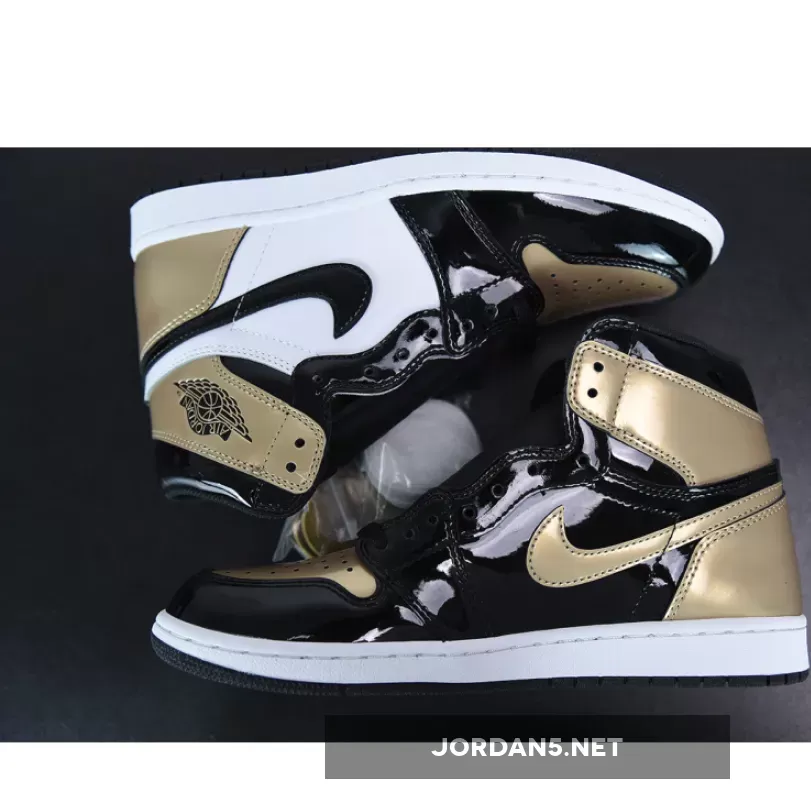 “I’m stoked with my new AJ1 Gold Toe! The black and metallic gold patent leather combo is sick. Love the perforated toe box and heel panel accents. Comfortable fit too!” – JordanFan33