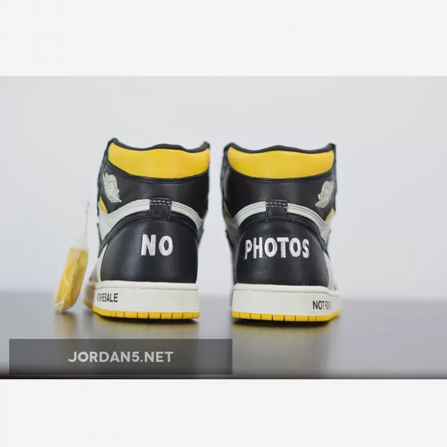 Dressed in a Sail, Black, and Varsity Maize color scheme. This Air Jordan 1 is highlighted with several different texts throughout the entire shoe. Those include “Wear Me” on the tongues, “No Photos” on the heels, “Please Crease” on the toes, “Sorry, This Pair Is Not Numbered” on the inner lining of left shoe, and “General Release” on the right. “Not For Resale” on the midsole, and “No L’s” printed on the insole completes the theme.