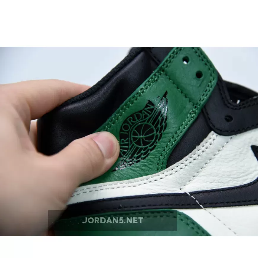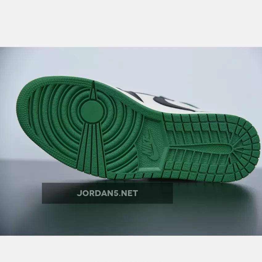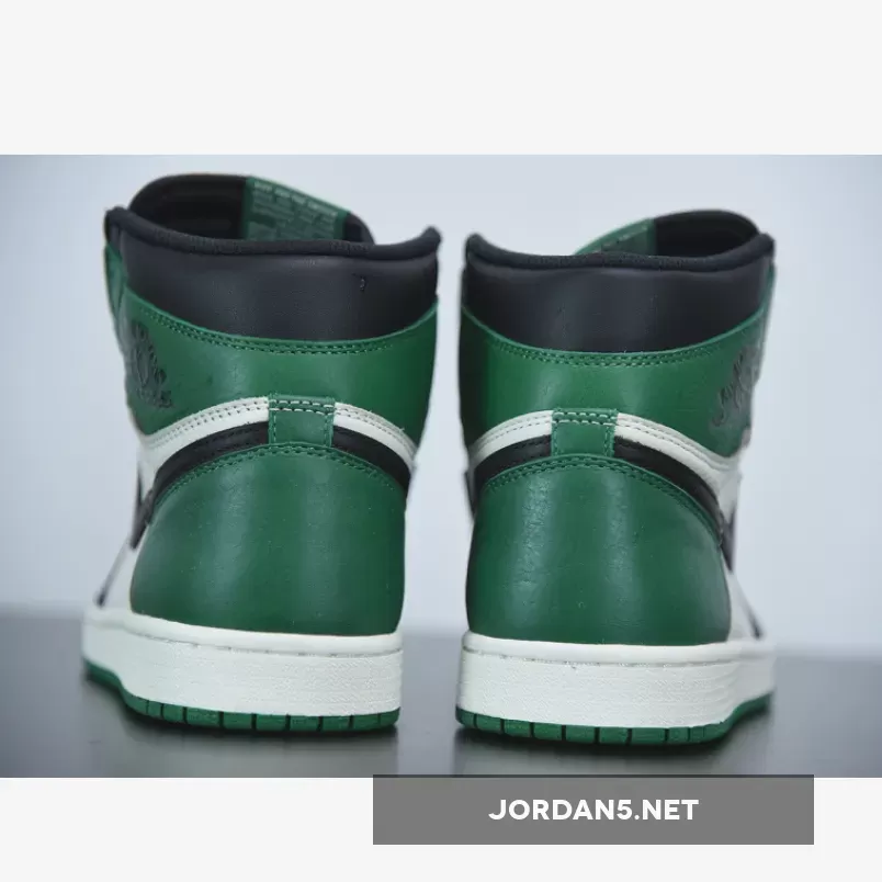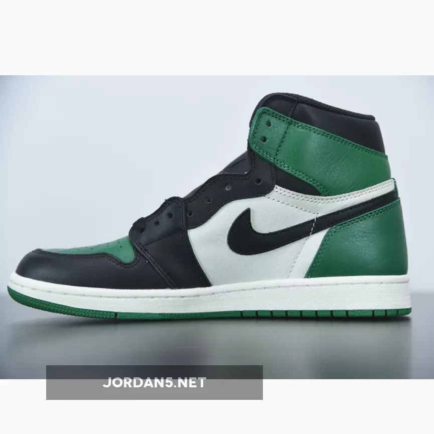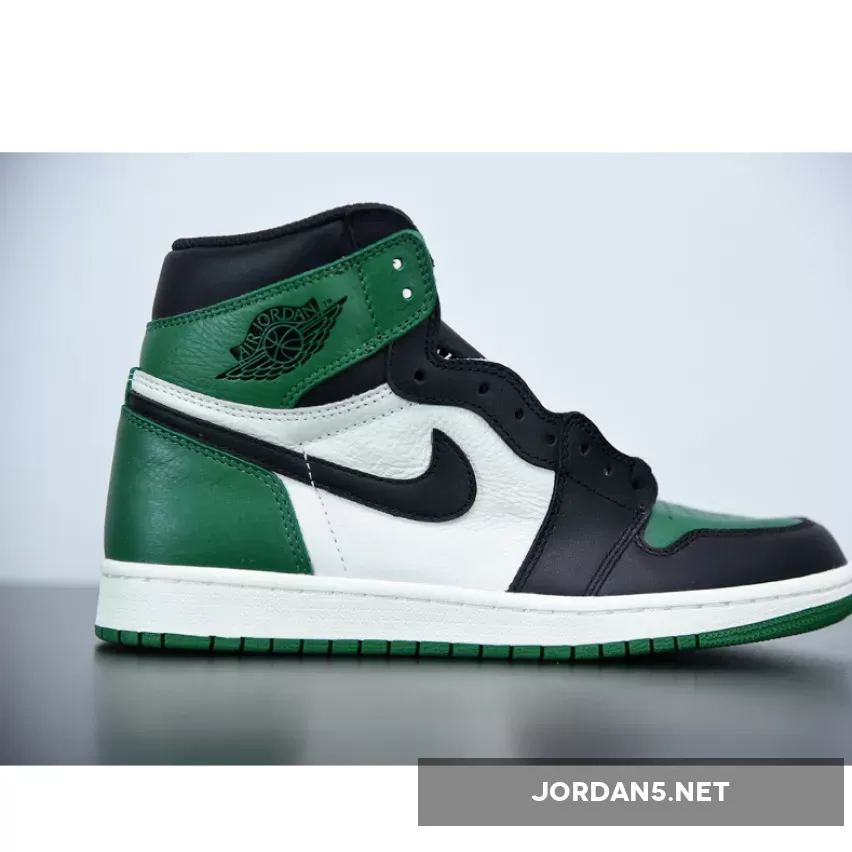 Dressed in a Pine Green, Sail and Black color scheme. This Air Jordan 1 features Pine Green on the toe box, tongue label, heel and rubber outsole. Black covers the tongue, laces, Wings logo, Nike Swoosh and overlay on the toe. Finishing off the design is White on the mid-section as well as on the midsole.