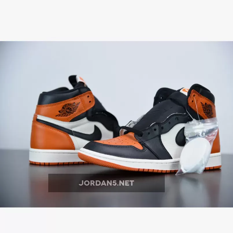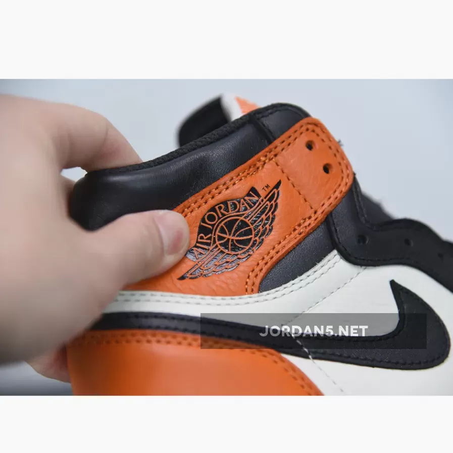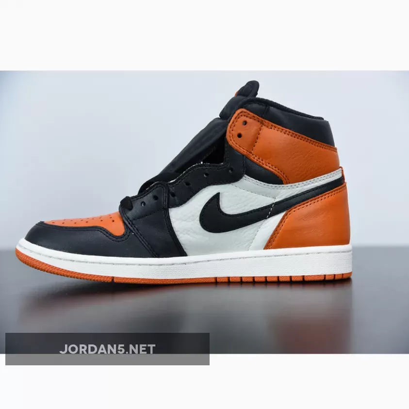 In 1985 on a Nike Europe tour, Michael Jordan shattered a backboard when throwing down a monstrous dunk while wearing an orange, black, and white uniform. Commemorating the moment and uniform, this 2015 Air Jordan 1 ‘Shattered Backboard’ (aka ‘Shattered Backboard’ 1.0) sneaker was released. Shortly after in the Fall of 2016, an Air Jordan 1 ‘Shattered Backboard Away’ (aka ‘Reverse’ and ‘Shattered Backboard 2.0’) was released. The sneaker keeps the black laces and Nike branding, but swaps out the orange toe box and black around the toe and tongue for white.
