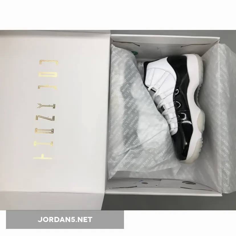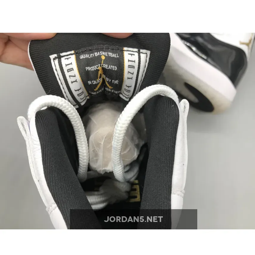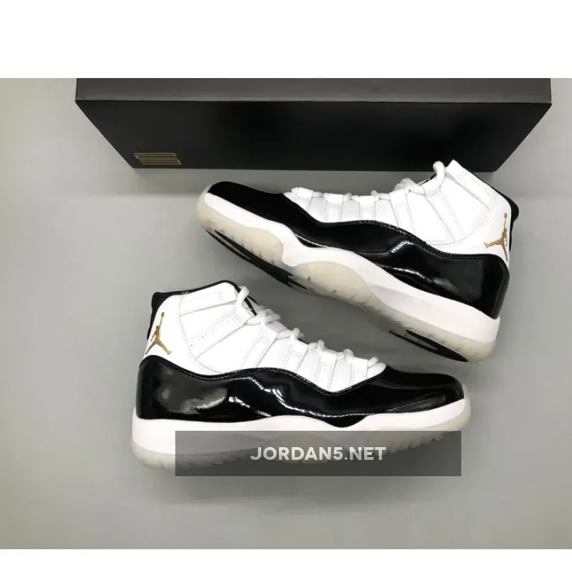 This classic offering of the Air Jordan 11 features a White leather upper instead of mesh with Black patent leather overlays. Highlighting the shoe are Metallic Gold accents on the branding. The pair will also come with a high-cut patent leather for the first time atop a White midsole and icy translucent outsole.