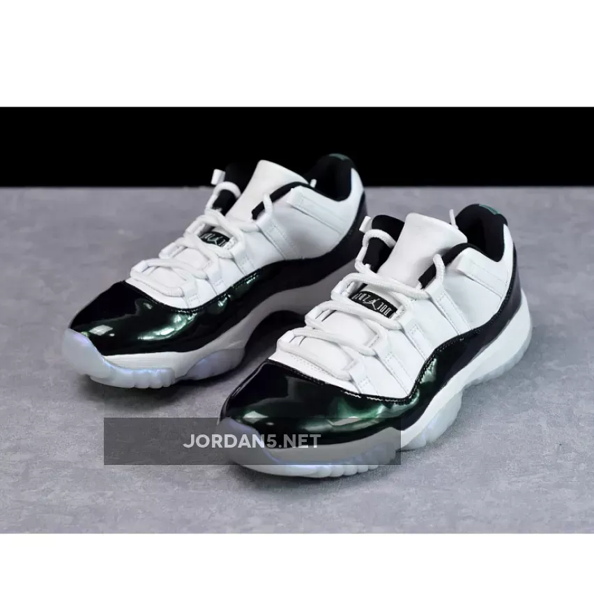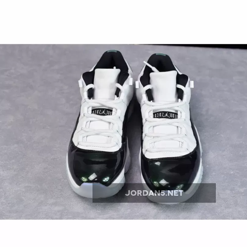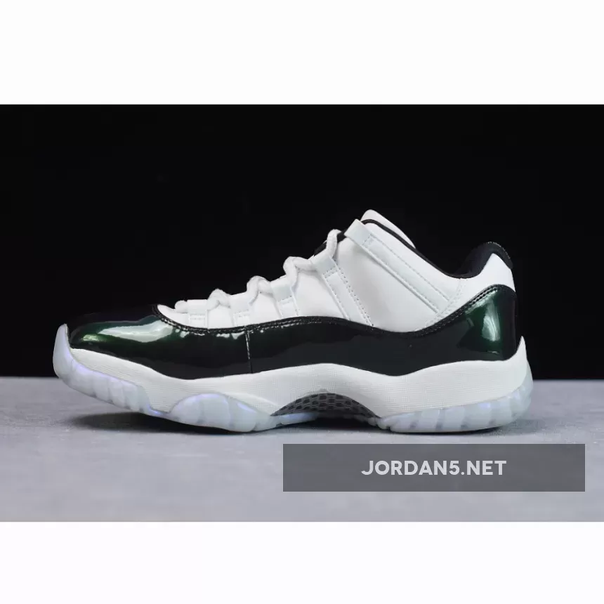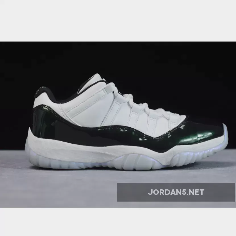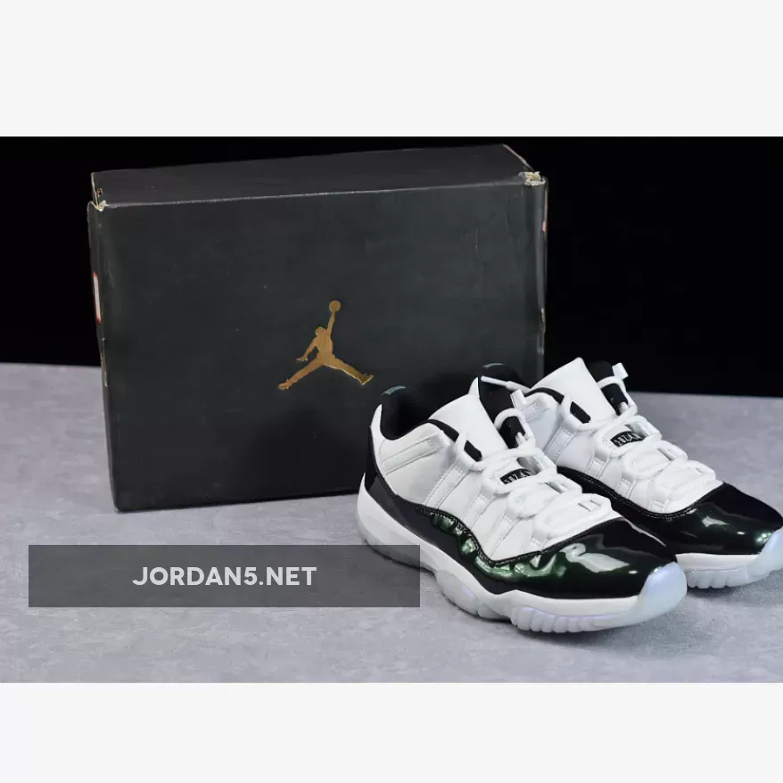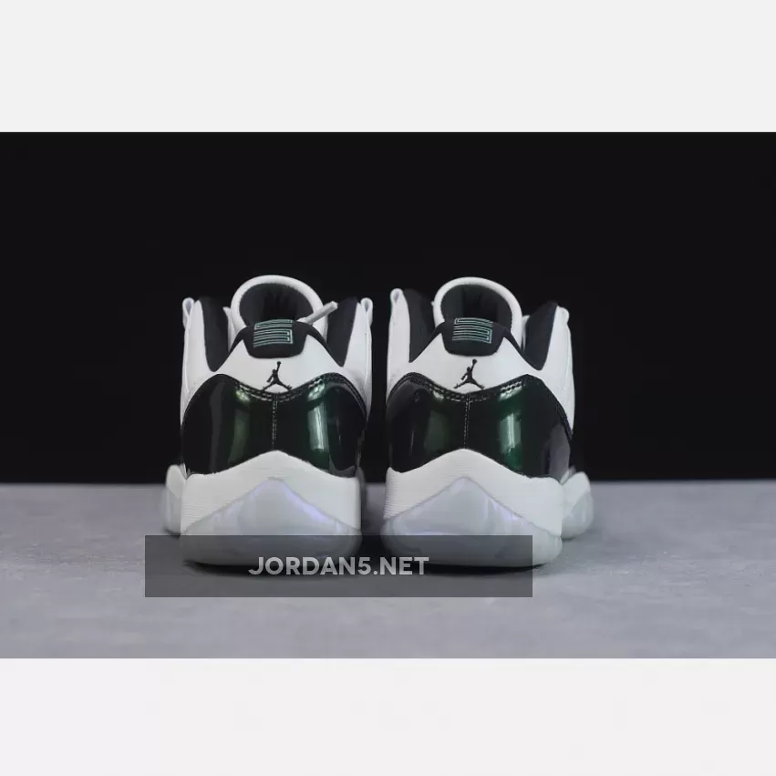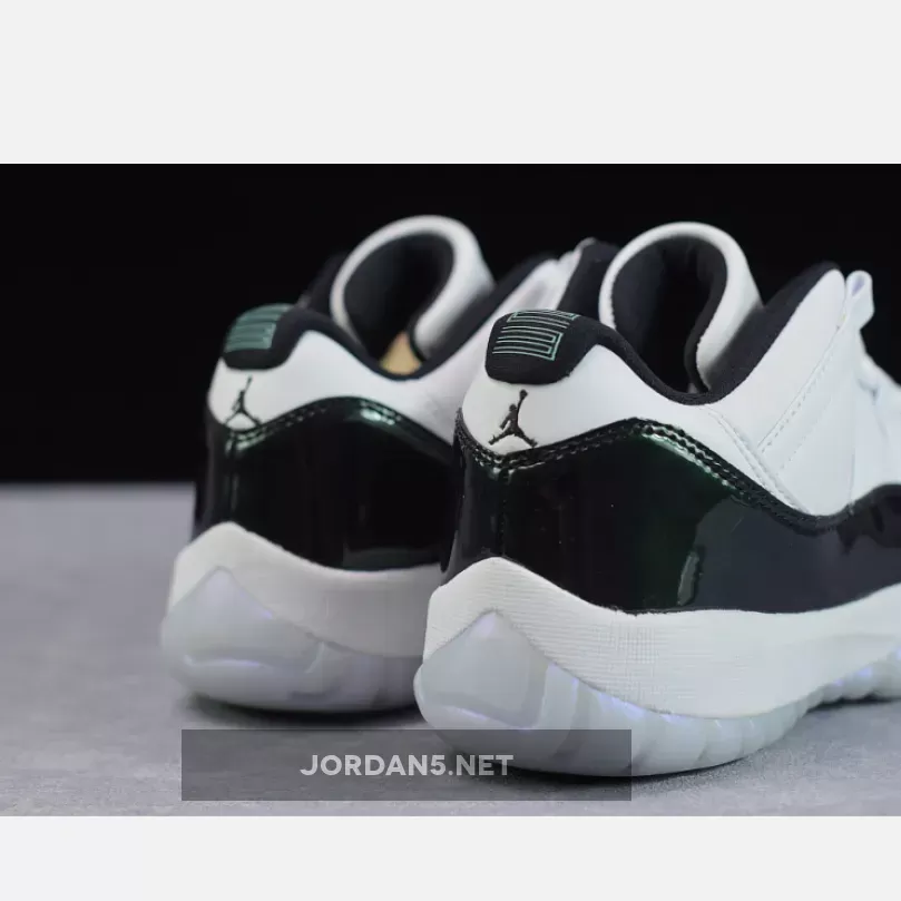 The instantly recognizable patent leather rand found on the Air Jordan 11 gets updated for this ‘Emerald’ colorway with a shiny iridescent finish. The Air Jordan 11 Retro Low ‘Emerald’ swaps out the ballistic mesh traditionally found on its high-top counterpart for a premium all-leather build.