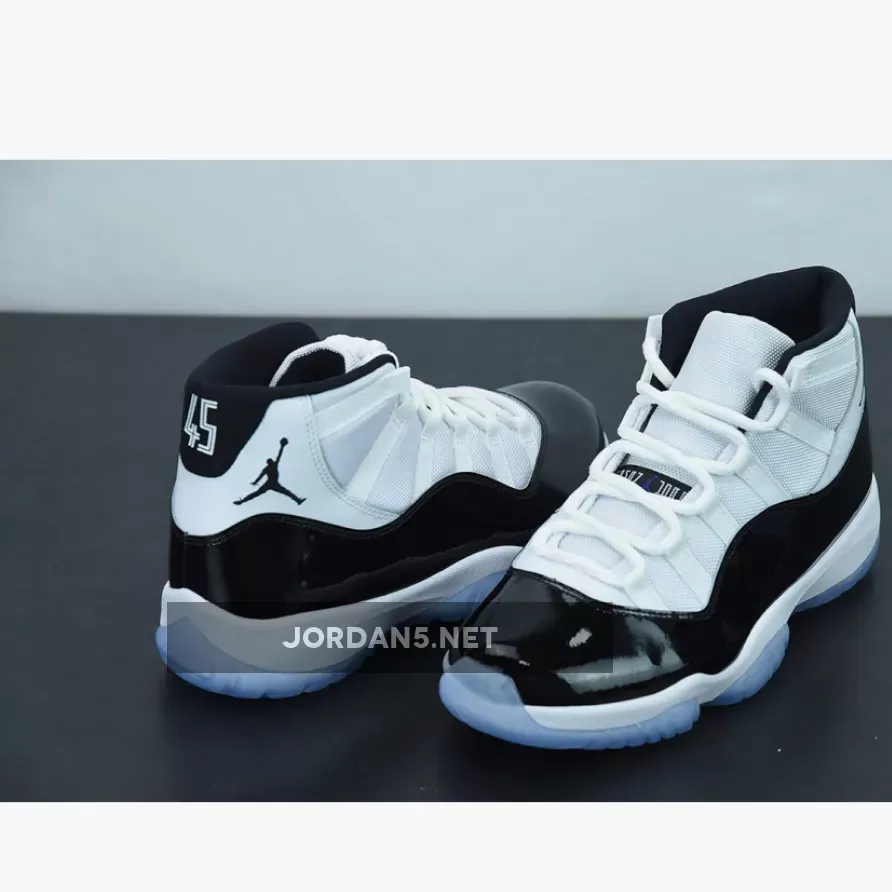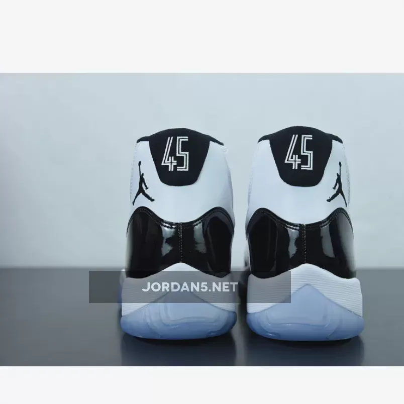 The 2018 edition of the Air Jordan 11 Retro ‘Concord’ features ‘45’ stamped on the black heel tab—a nod to the jersey number that Michael Jordan wore upon his return to basketball following his first retirement. The rest of the build keeps the shoe’s signature details intact, including a white ballistic mesh upper, black patent leather overlays and an icy translucent outsole underfoot.