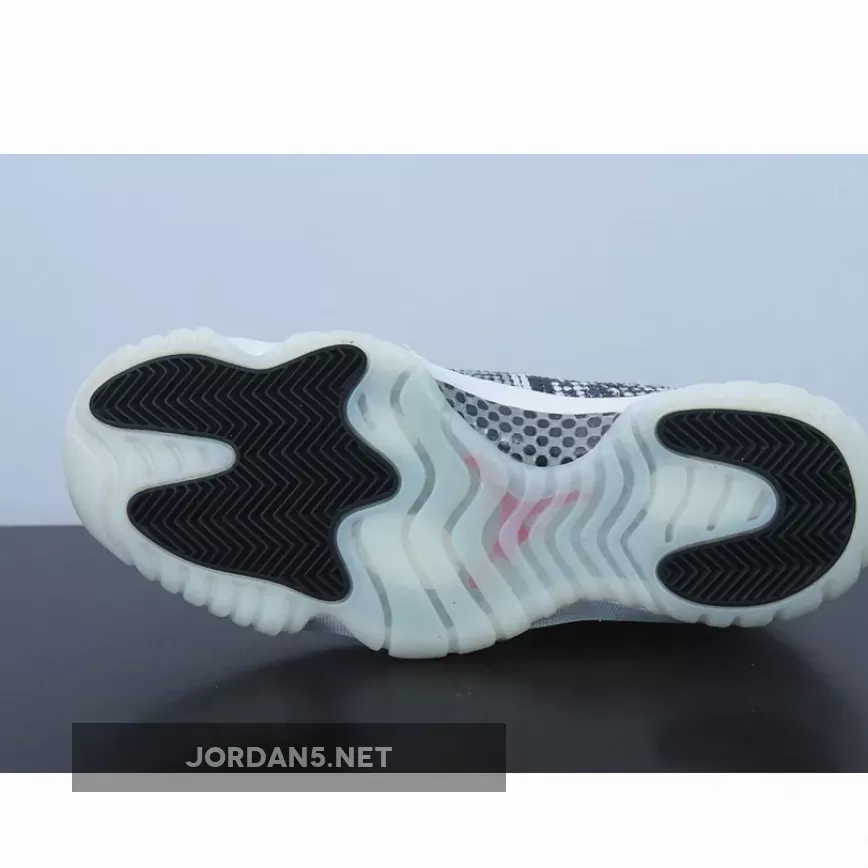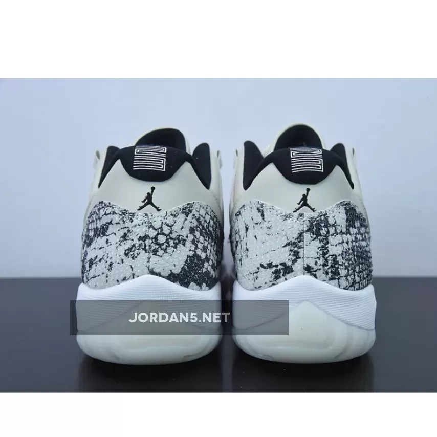 It wears a soft white leather upper in a full snowy aesthetic all over. The Snakeskin texture on the mudguard pops up with black and smokey ash shade. This feature is a dominant statement for the crep, and it’s very noticeable. Black inner lining, piping, and the Jumpman logo pop up brightly.