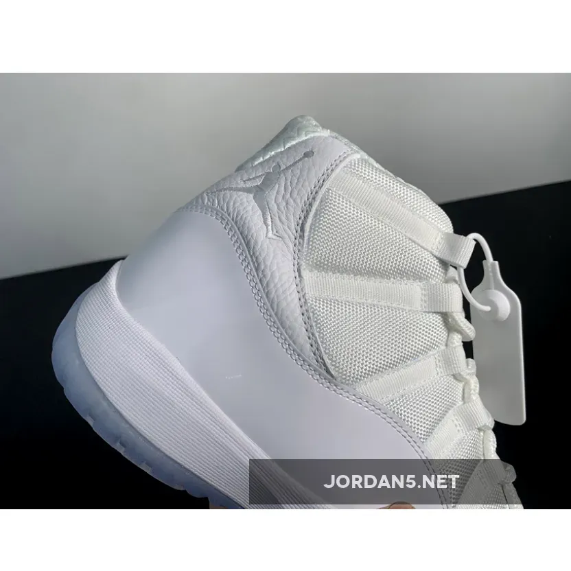 The ‘Silver Anniversary’ Air Jordan 11 came in a simple and sleek White and Metallic Silver theme. Featuring a White mesh and patent leather upper with no Jumpman logo around the ankle sitting atop and mesh uppers while tumbled leather wrapped the heel. The heel sported a quilted patch with the number 23 in Metallic Silver which also was placed on the lower portion of the tongue. They are then completed with a translucent outsole.