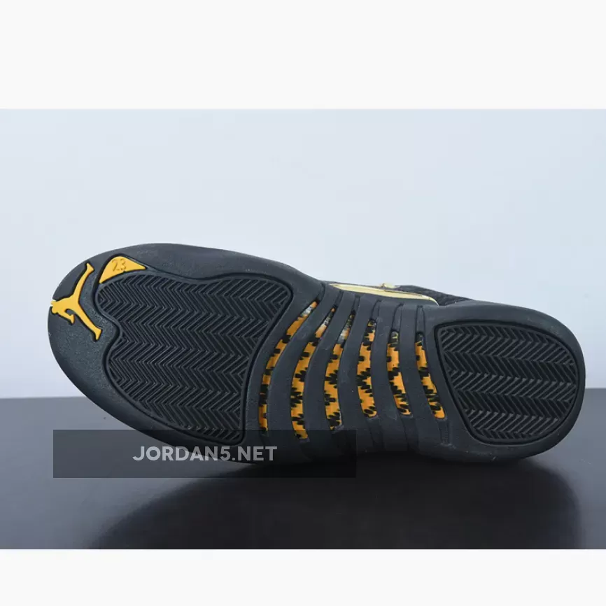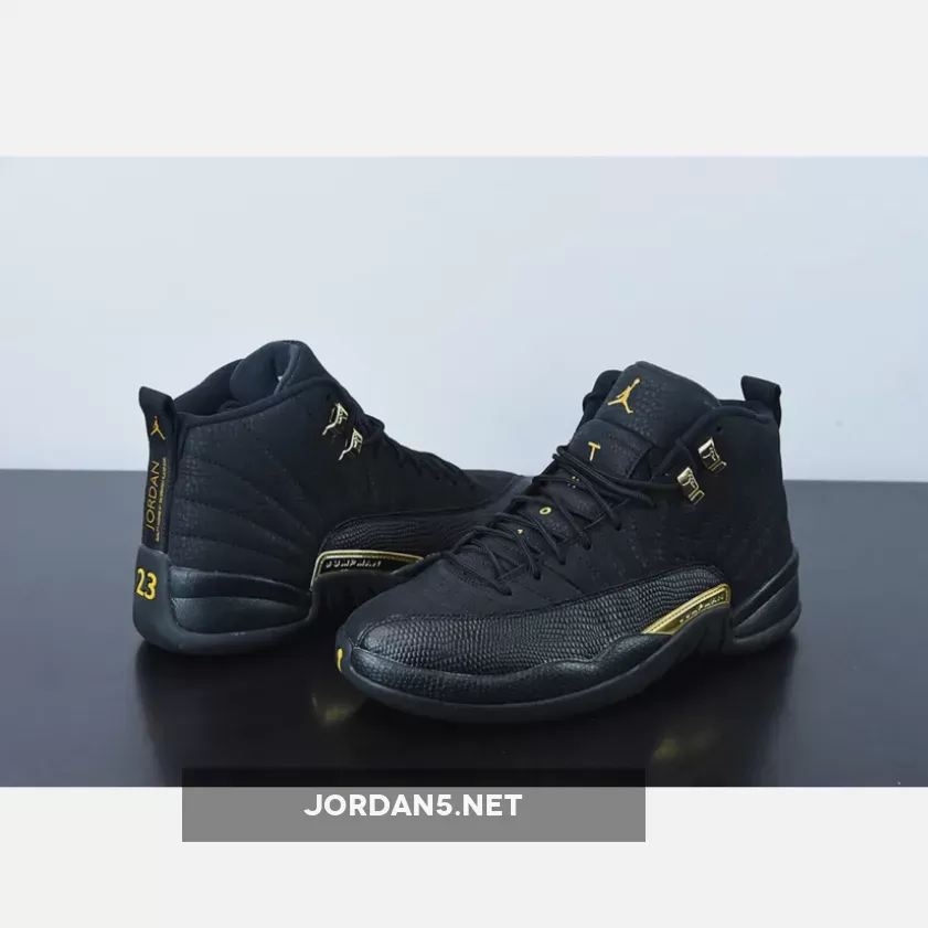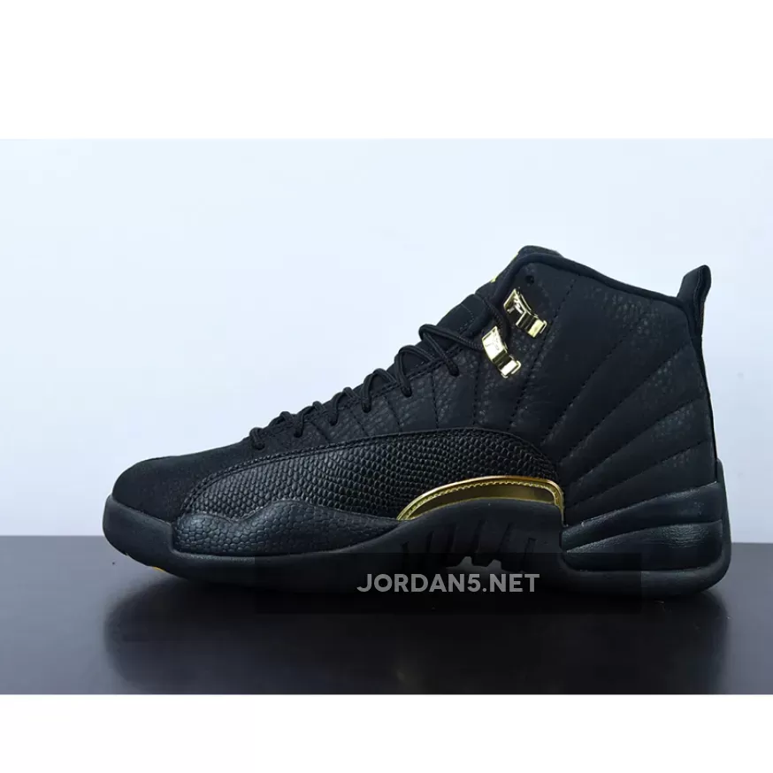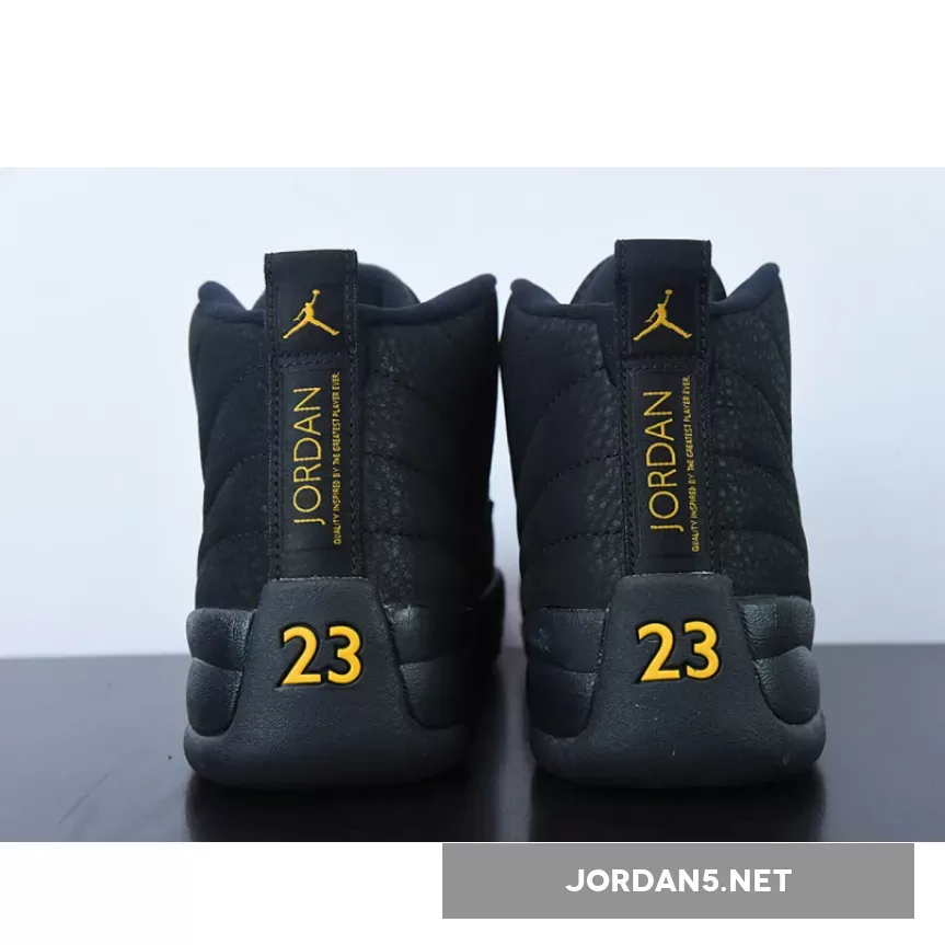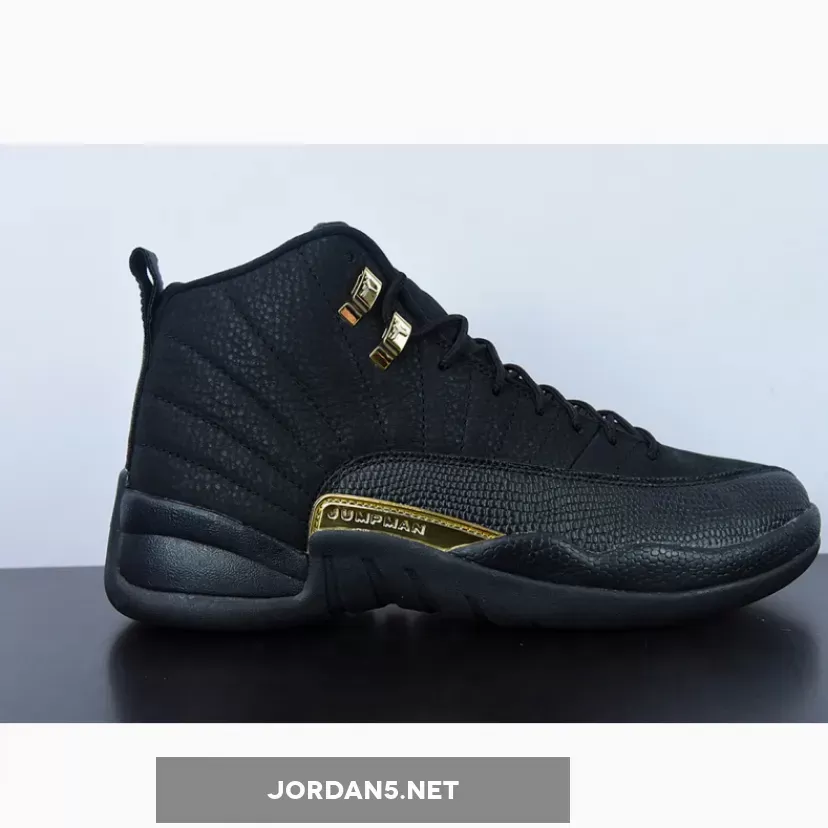 The Air Jordan 12 is getting a stealthy makeover ready for the winter months. Introducing the Air Jordan 12 Black Taxi. The name of this Jordan 12 colourway comes from the all-black upper combined with the metallic gold accents that dress the eyelets and part of the mudguard near the midsole of the sneaker. Mixed materials add a luxury element to the shoe, with a scaly design taking over part of the midsole as well as the rest of the mudguard. A suede upper that comes in a padded, quilted fashion surrounds the ankle, and a pull tab on the heel allows for the sneaker to be put on and removed easily.To cop the Air Jordan 12 Black Taxi, use the links on this page. Remember, you can set your release reminder using the bell icon on any product page on our site.