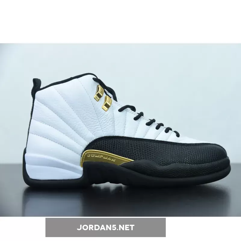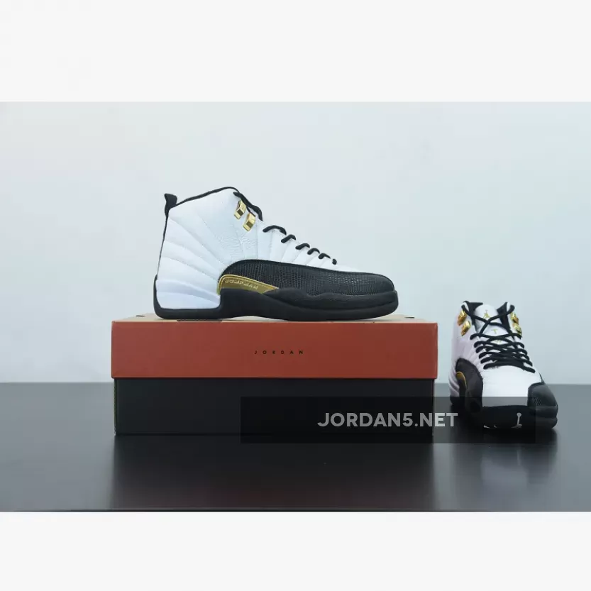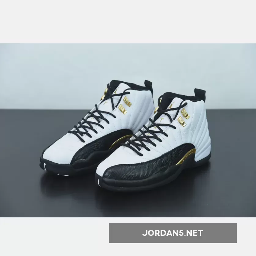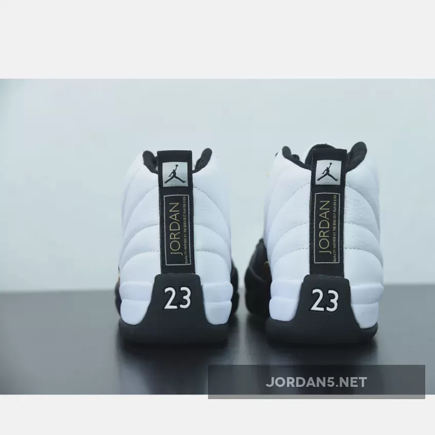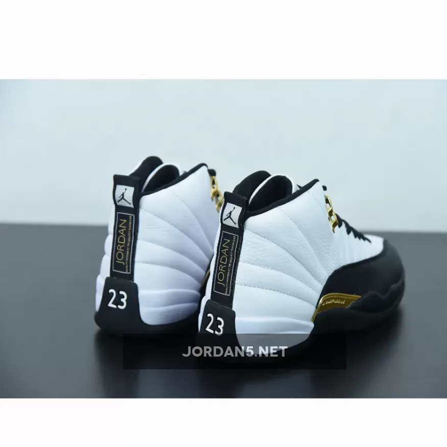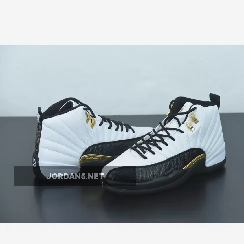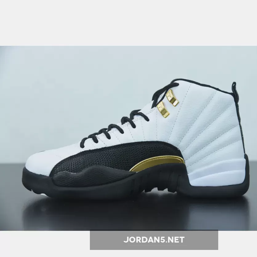 Dressed in a White, Black, and Metallic Gold color scheme. This Air Jordan 12, dubbed “Royalty” – similar to 2017’s Air Jordan 4 release, features a White leather upper, Black toe overlays and rubber sole, and Gold eyelets to look like the original. However, the new additions includes a premium sockliner along with more Gold appearing on the mudguard, tongue branding, and heel tab to complete the design.