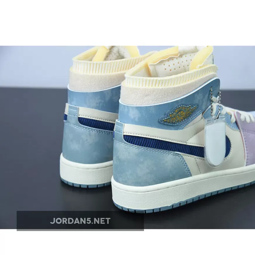 Vintage design meets modern technology in the Air Jordan 1 Zoom CMFT Washed Blue. Dressed in pale pastels, this fashionable shoe brings to mind sceneries of spring — from the bright sky to the colourful blooms. Setting the stage is an off-white supple nubuck base which is dressed in patchy washed-out blue and purple overlays. Furthering the serene palette is the ocean blue Nike Swoosh placed at the side panels, while a gold Air Jordan logo adds a touch of regalness. Build-wise, a slight hint of deconstructed aesthetic is showcased by the exposed padding. Trust us, this Air Jordan 1 Zoom CMFT model is a dreamy pair you’ll keep on thinking about.