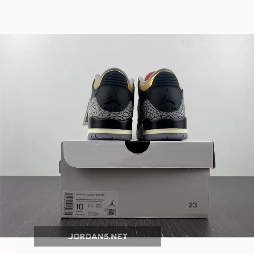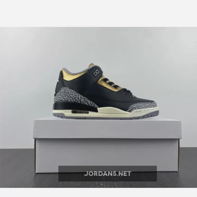 Jordan Brand is set to continue its rollout of women’s-exclusive Air Jordan 3 releases with the Air Jordan 3 Women’s “Black/Cement Gold” – a pair that’s heavily based on some serious AJ3 history, namely 1988’s legendary “Black Cement” colourway. Whilst the pair remains largely similar, this release sees a key difference, as this time a luxe touch of gold decorates some of the panels. Starting off with a premium, black tumbled leather base, the “Black Cement/Gold” AJ3 sees the style’s famed “Cement Grey” Elephant print panels wrap themselves around the toe cap and heel overlays, whilst the collar and eyestay panels give way to metallic gold foils. Touches of “Fire Red” dress the lower eyelets and Jumpman branding at the tongue, and the heel branding arrives in a stealthy, blacked-out shade. To finish, grey sock liners match a “Cement Grey” rubber outsole, the latter sitting underneath a “Sail” midsole that completes the retro vibe.<hr><div ><h3 >Release Date:</h3><p ><span >Oct 6th 2022</span></p></div><div ><h3 >Price:</h3><p ><span data-testid="price"><span style="color:#000000">£170.00</span></span></p></div><div ><h3 >Brand:</h3><p >Nike</p></div><div ><h3 >Model:</h3><p >Air Jordan 3</p></div><div ><h3 >Style Code:</h3><p >CK9246-067</p></div>