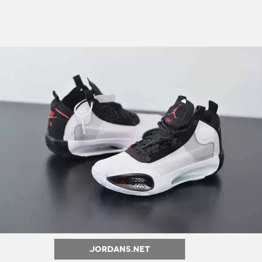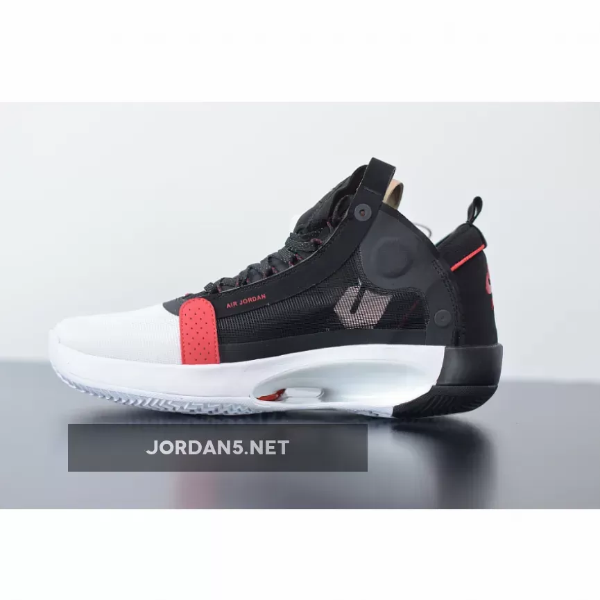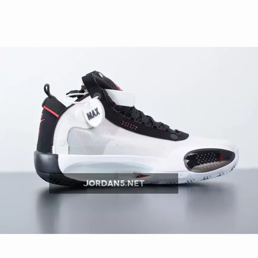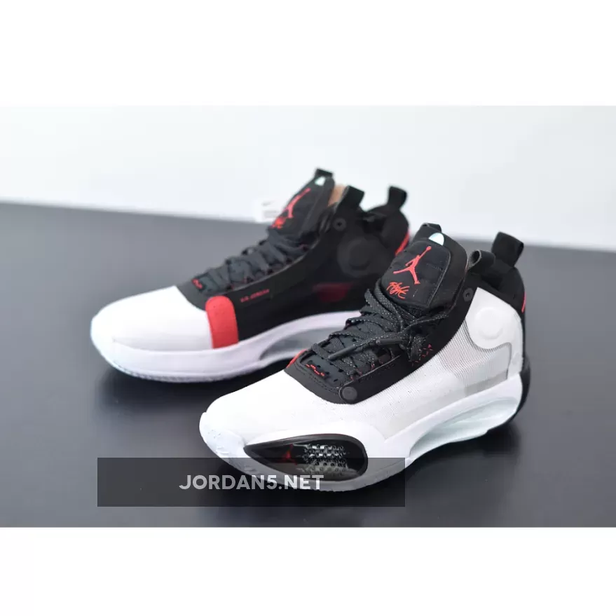 One of those is this upcoming offering that sports the popular “Bred” color blocking. This Air Jordan XXXIV features a White and Black upper paired with Red contrasting accents including “Nike Air” branded on the heels. The Jordan Eclipse Plate is seen in the center of the white midsole along with a Zoom Air unit at the forefoot.