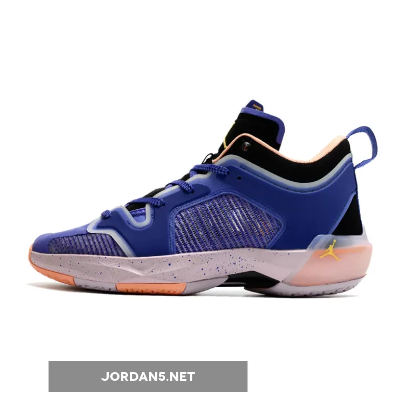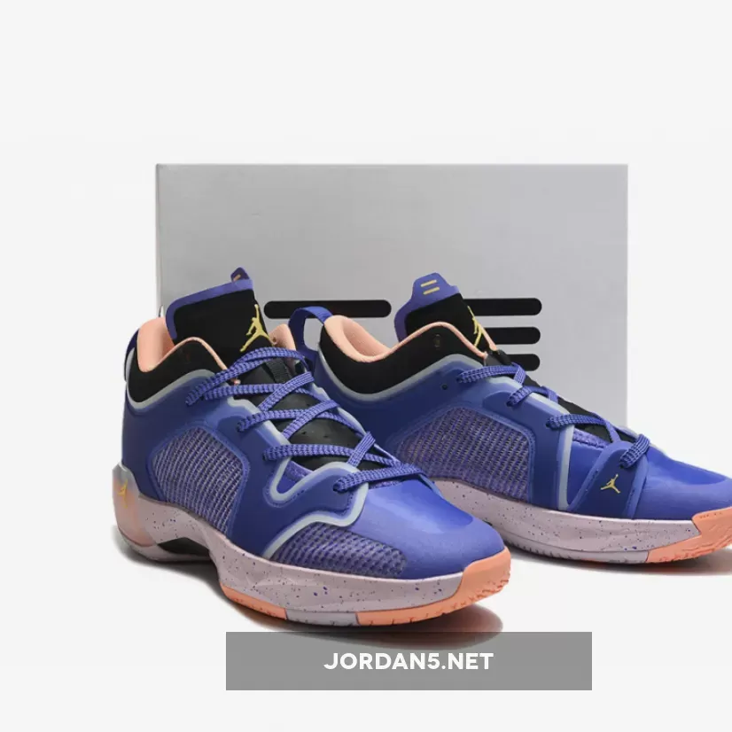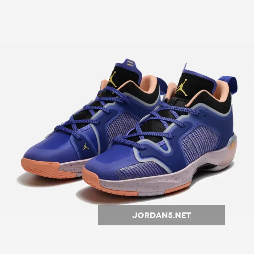 This Air Jordan 37 Low comes dressed in a Lapis, Saturn Gold, Black, Crimson Bliss, and Iced Lilac color combination . This offering of the Air Jordan 37 Low comes constructed with woven mesh panels and leather overlays. Some of the other details includes Michael Jordan’s signature along the heel pull tabs, a carbon fiber plate at the midfoot with a soft Formula 23 foam at the heel completes the design.