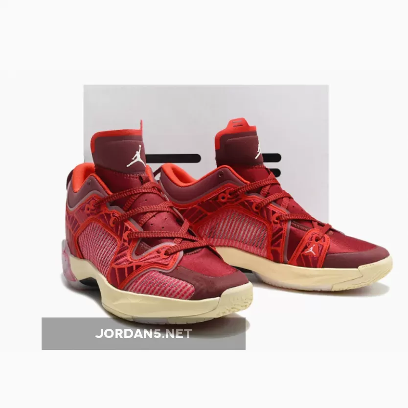 This Air Jordan 37 Low comes dressed in a Team Red, Sail, University Red, and Muslin color combination. Constructed with a mixture of mesh panels and embroidered patterns on the overlays, the shoe’s upper appears in mostly all-red hues. From the laces to the insoles and the Jumpman logo on the heel, red highlights these details. The shoe Other details include a carbon fiber plate in the mid-foot and Formula 23 foam in the heel.