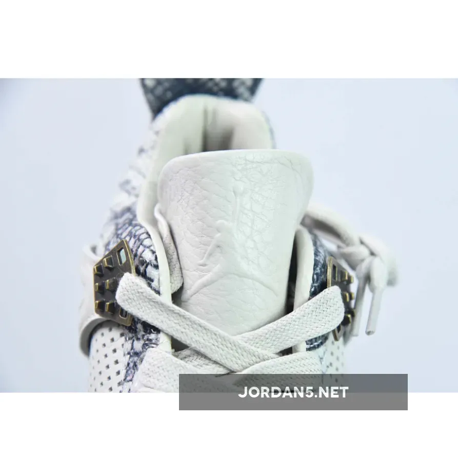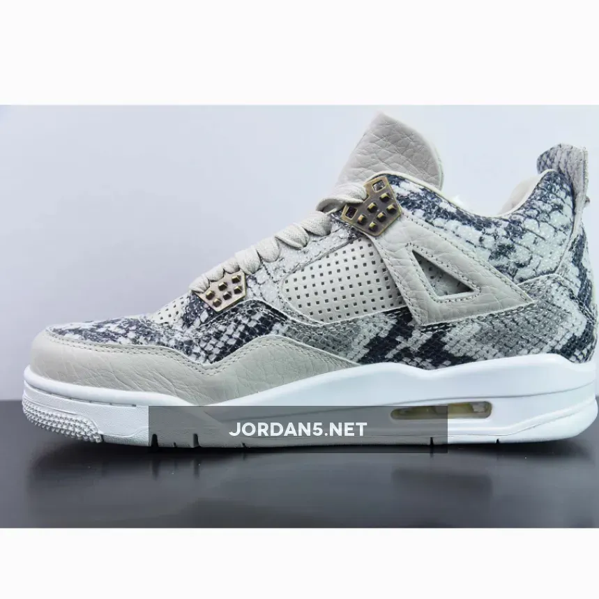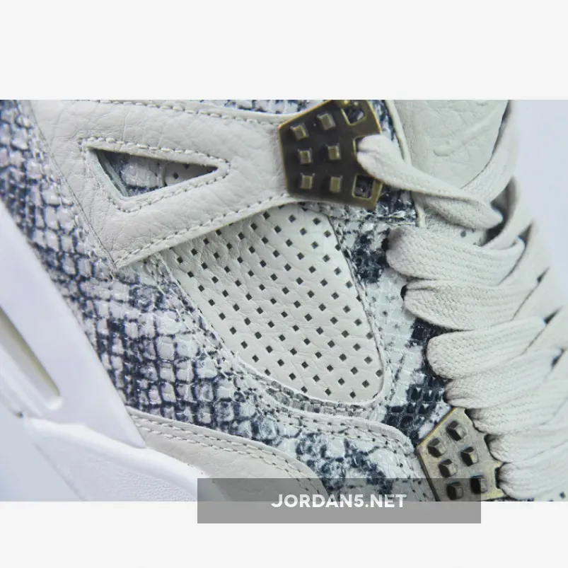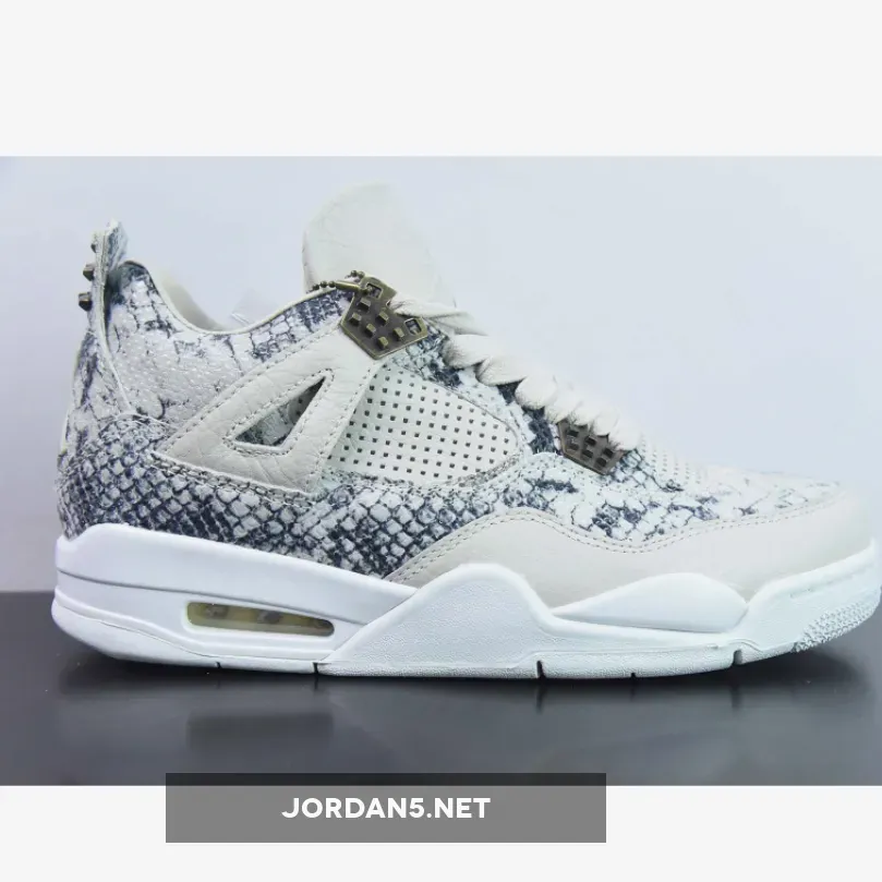 You can’t help but look at this unique design.The classic high top silhouette has never looked more eye-catching. This time around the kicks adopt a predominately white make-up, coupling a stark white midsole and outsole with premium leather and snakeskin. Staying true to the original Air Jordan 4 design, perforated detailing is stamped to the sidewall and a chunky, white midsole sits underfoot. Of course, this wouldn’t be complete without a visible Air Unit in the heel.