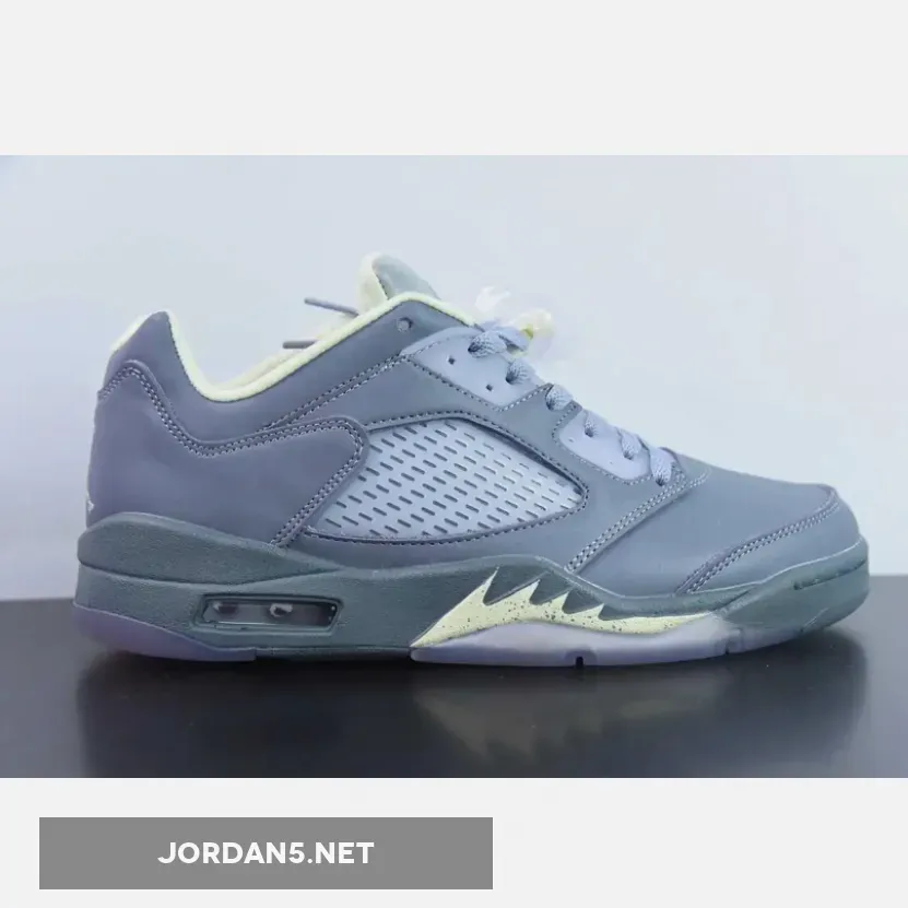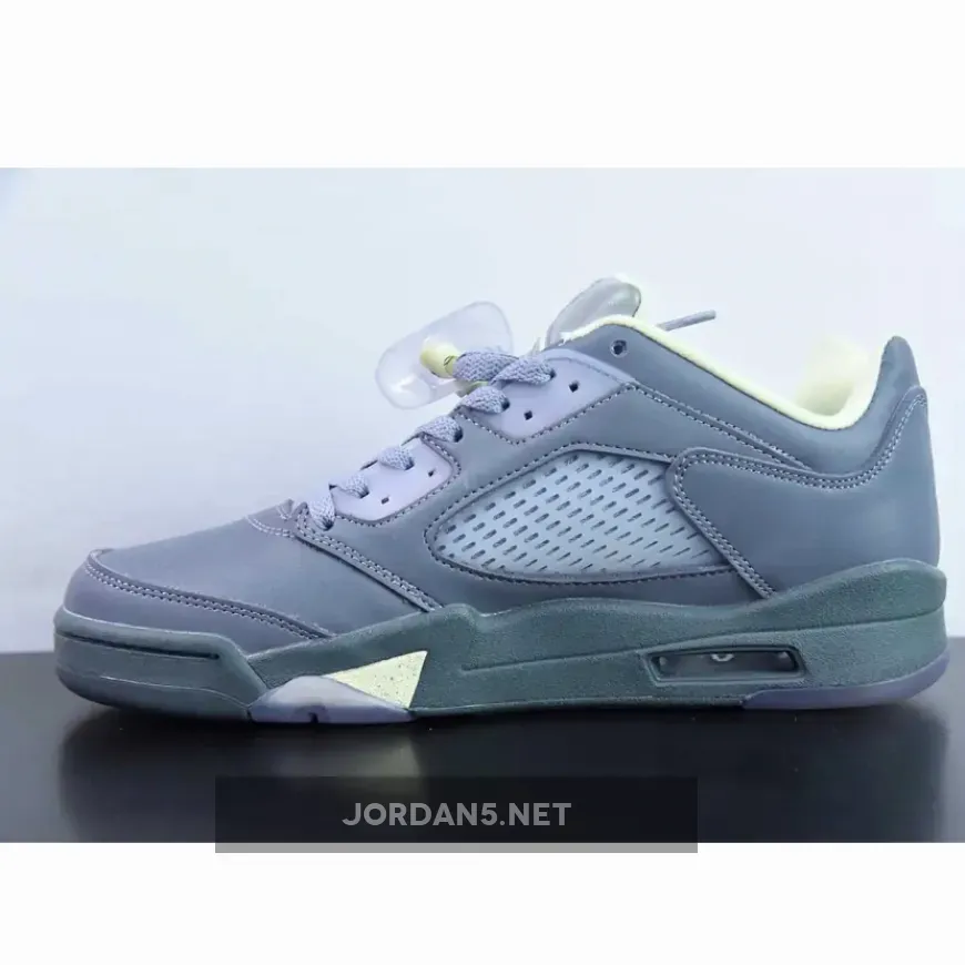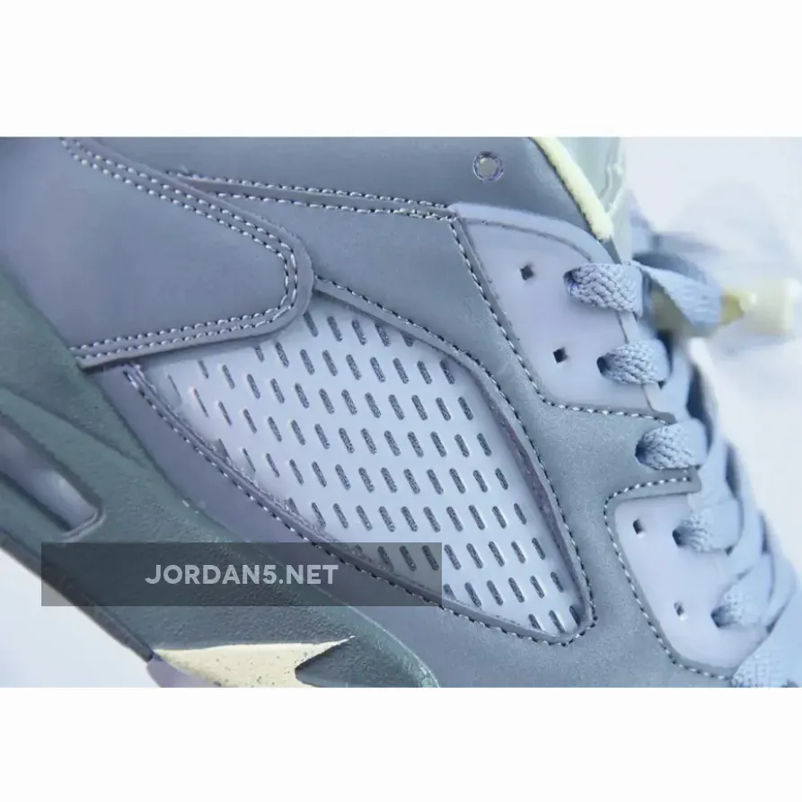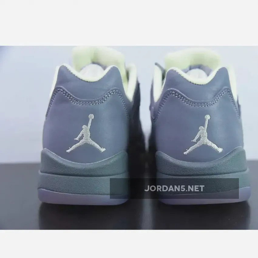 This offering of the Air Jordan 5 Low features a 3M reflective upper in an Indigo hue with Alabaster contrasting accents.