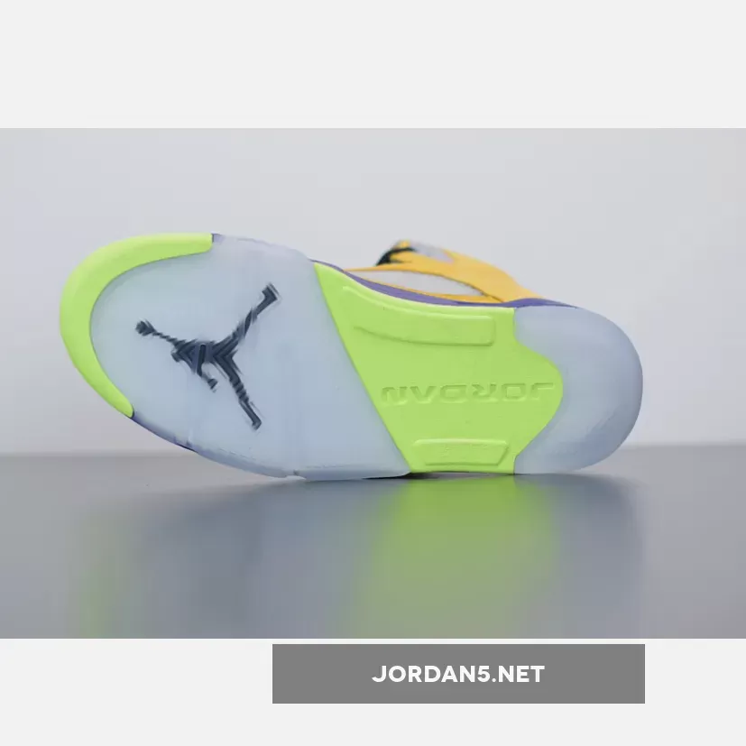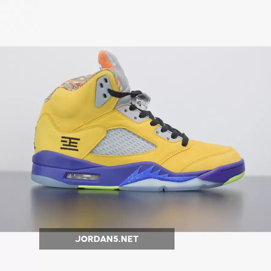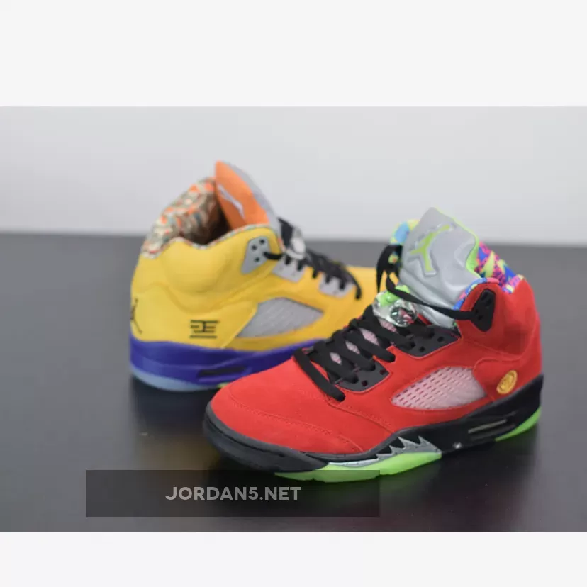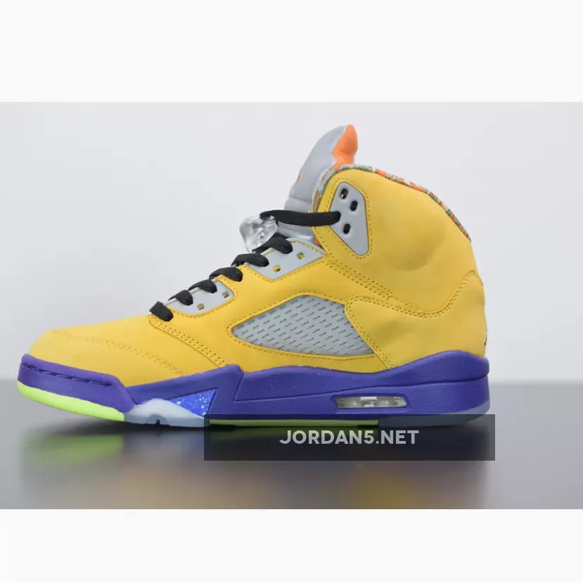 The Jordan 5 What The is the latest Air Jordan set to drop from Nike and Jordan Brand, and we’ve got a first look right here. The legendary Jordan 5 dropped for the first time in 1990 as Michael Jordan’s fifth signature Nike Air sneaker, and was designed by the one and only Tinker Hatfield. While Air Jordans have always been popular amongst basketball fans, the popularity of these specific basketball shoes has increased massively as of late due to high-end collaborations with those such as Virgil Abloh and of course the highly-coveted ESPN documentary The Last Dance (documenting Michael Jordan and the Chicago Bulls). The colorway seen here is a crazy-looking mash-up of some of the most iconic colourways of the Jordan 5 of all time, launching to celebrate the 30th anniversary of the pair, and we’ve got your best look yet. Vibrant shades of yellow, red, purple, green and many other colours adorn the luxury suede uppers, while Jumpman branding at the tongue and various other motifs are carefully placed for a premium look. The Nike Air Jordan Jumpman logo once again adorns the heel, where panels from the iconic “Purple Grape” AJV can be found. Of course, a visible Nike Air unit is present under the heel, making sure that these are mega comfortable both on and off the basketball courts. The Nike Air Jordan 5 What The has finally been given a release date for later on this year, when it’s set to drop at select retailer sites across the internet and the Nike SNKRS app. There’s no doubting that this retro release is going to be a hyped one, so if you’re looking to cop these future classic Air Jordan’s make sure to stay locked in right here at Our Store Supplier, as we’ll update this page with direct links to retailer sites and the retail price as soon as it’s announced.