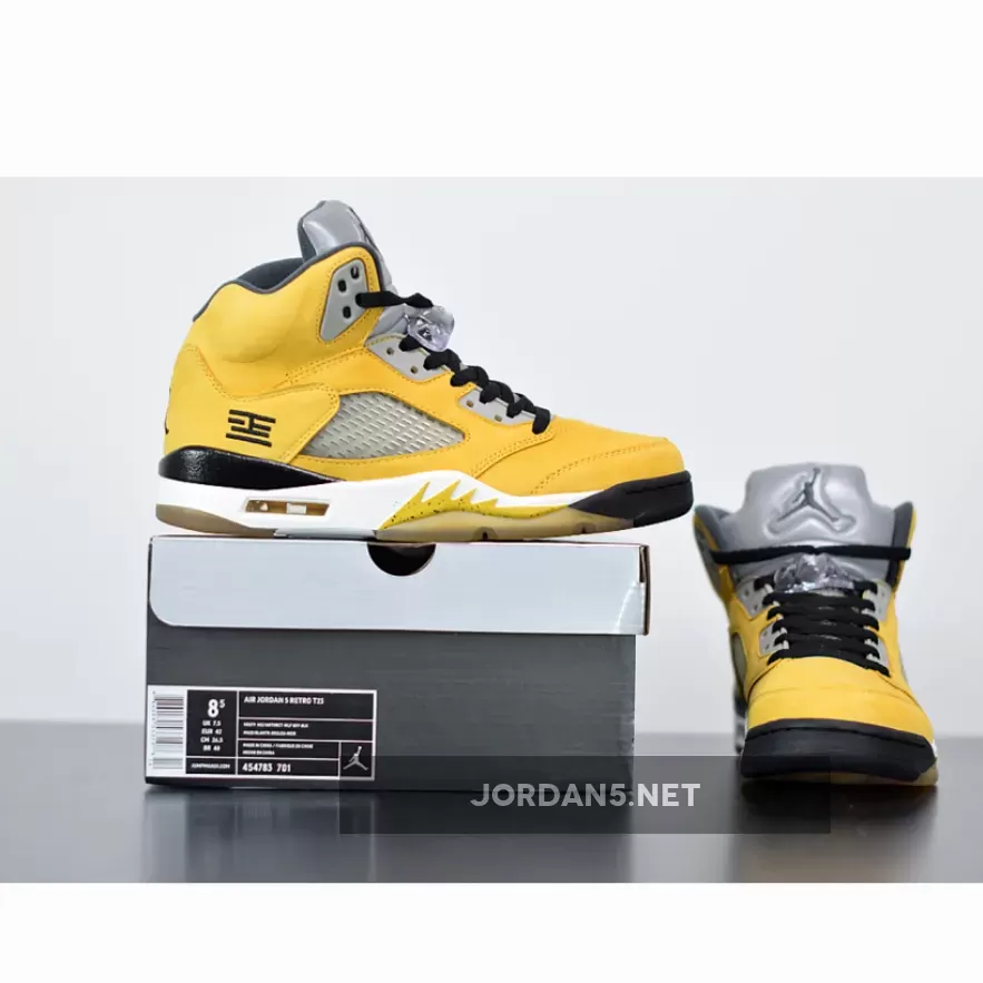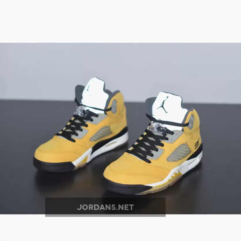 The Air Jordan 5 Tokyo 23 offers a stylish & premium look with its yellow nubuck upper & striking color scheme. Unique “23” symbol & 3M metallic tongues elevate the design. Comfortable & durable, perfect for any sneaker enthusiast! 💪 #AirJordan #Tokyo23 #Sneakers
