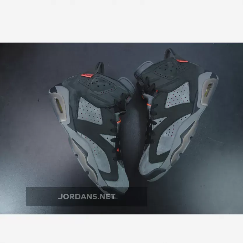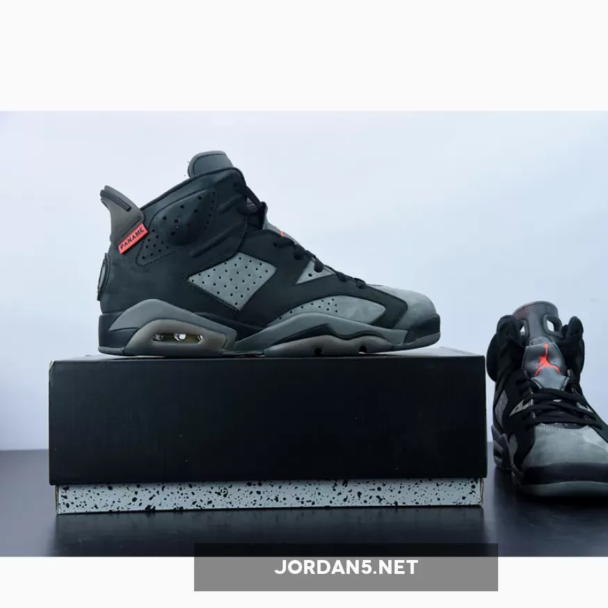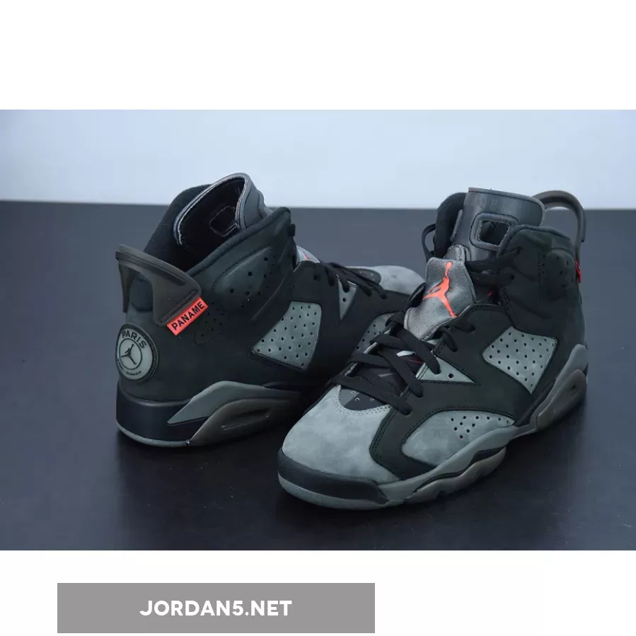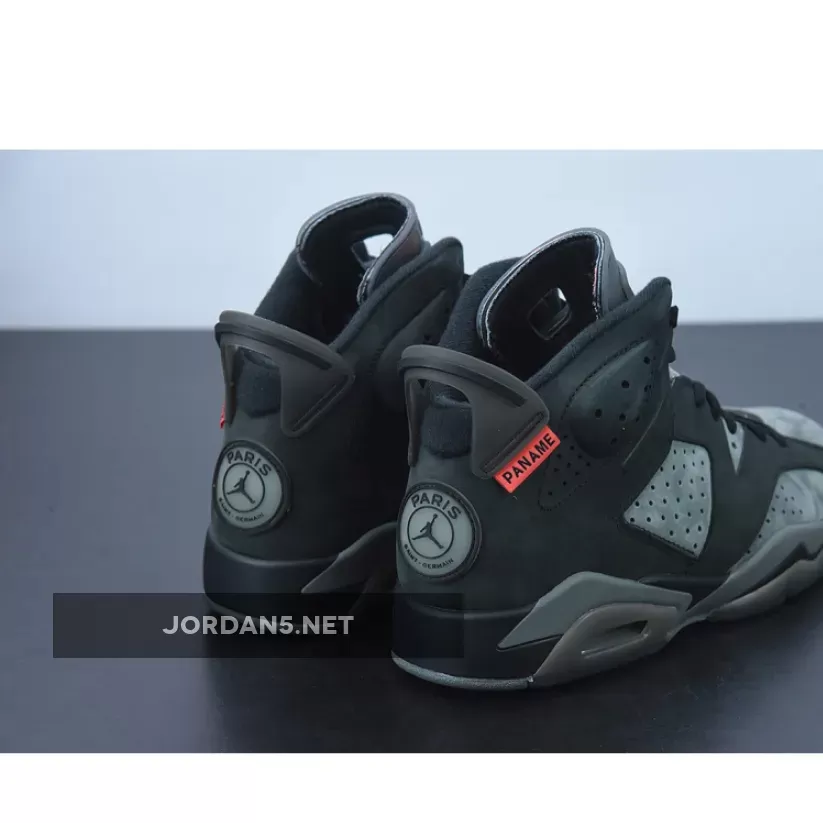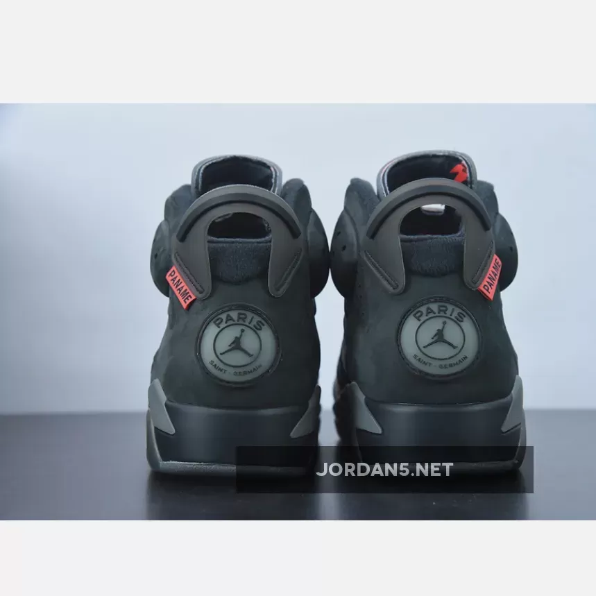 This Air Jordan 6 will come dressed in an Iron Grey, Infrared 23 and Black color combination. Looking closer it features Iron Grey and Black across the upper while hits of Infrared is used on the Jumpman branding, lace lock and heel tab. Following we have ‘PANAME’ on the heel tab, ‘Paris’ and ’75’ on the lace lock and PSG branding on the heel.