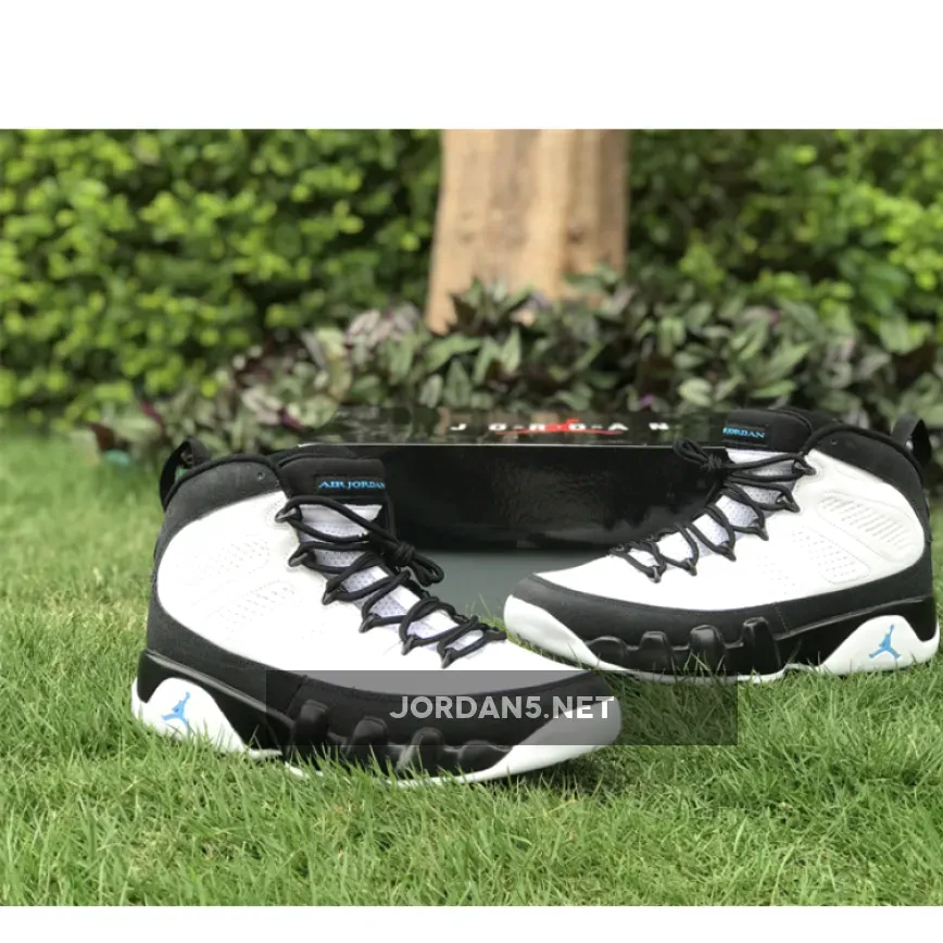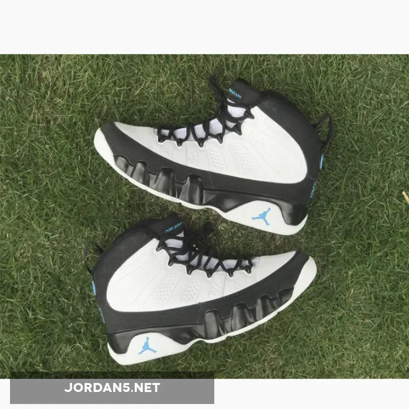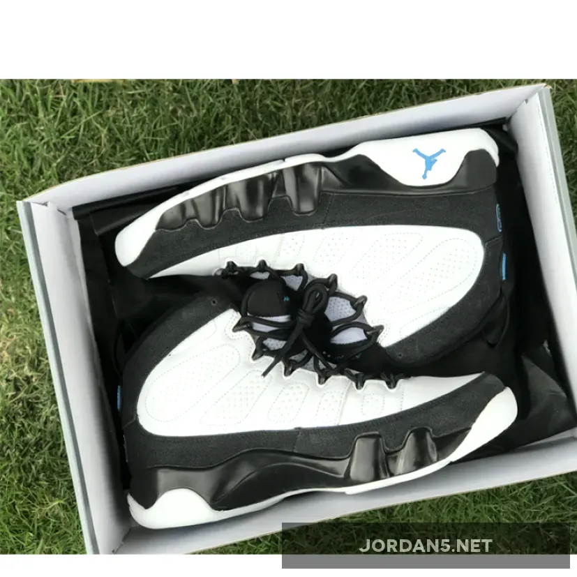 Solid colorway on the Air Jordan 9 Retro ‘University Blue.’ White and black are always timeless, and the pops of university blue really make this pair stand out. Quality materials and attention to detail make this a must-have for any sneakerhead. #AirJordan #Sneakers #HolidayRelease