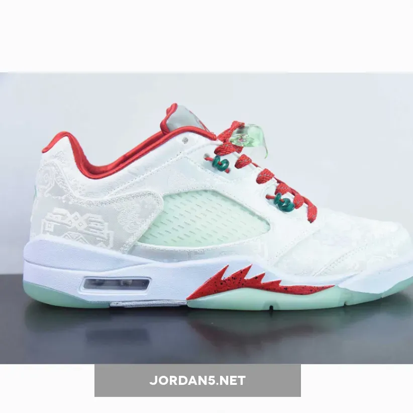 The jade-colored accents, however, remain, dressing the lace unit and sole alongside a few auspicious hits of red. Limited to 250, every pair of the CLOT x Air Jordan 5 Low “White Silk” will not only be individually numbered but also packed in a luxurious, hardwood box adorned with golden brass hardware and laser-etched co-branding.