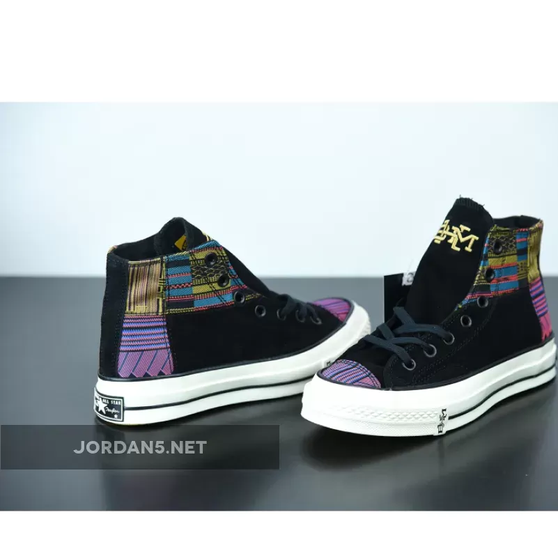 Part of a larger Black History Month collection from Converse in 2019, the Chuck 70 Hi ‘Black History Month’ features a series of colorful textile patterns throughout its classic construction. The rest of the upper is built with black suede, while the tongue and midsole sport ‘BHM’ branding. Underfoot, a bright yellow outsole with a diamond pattern provides traction.