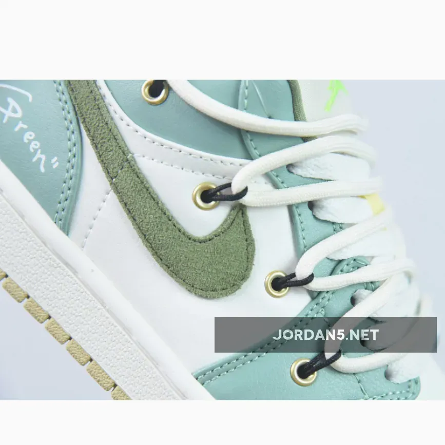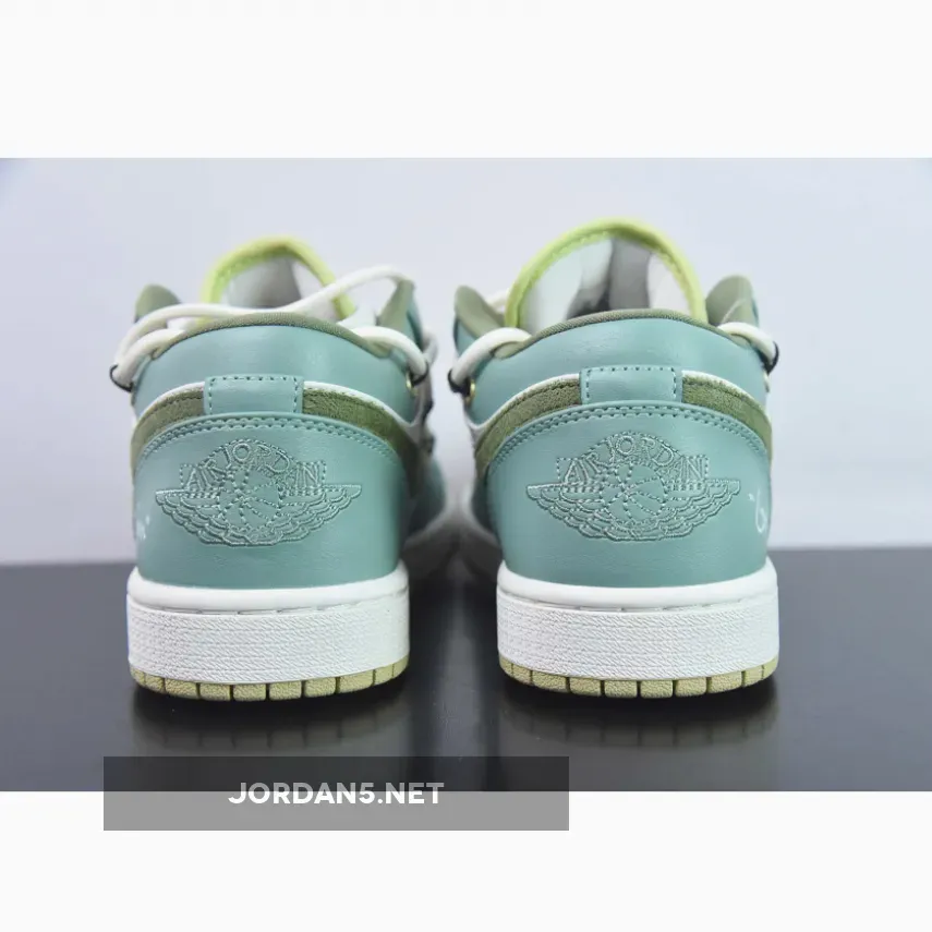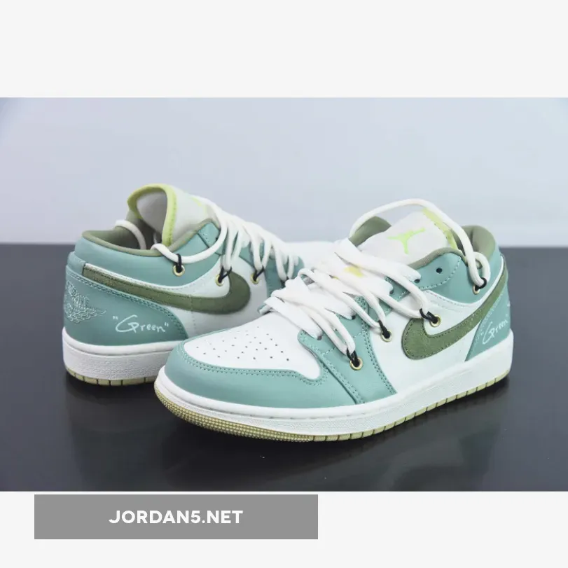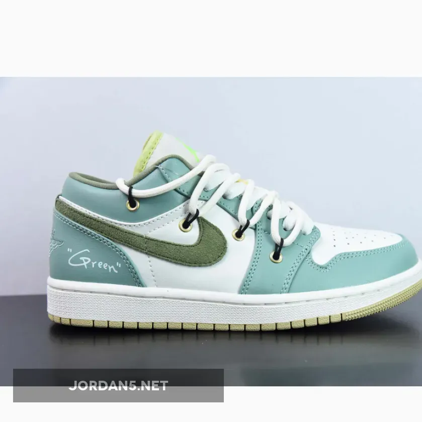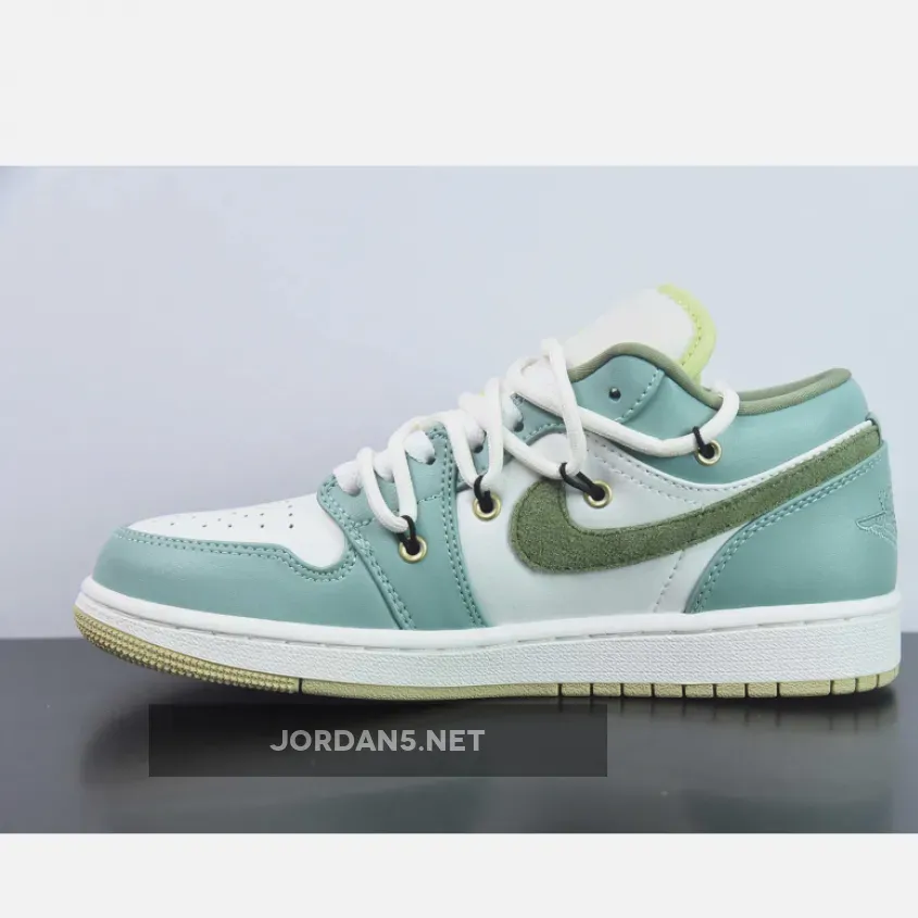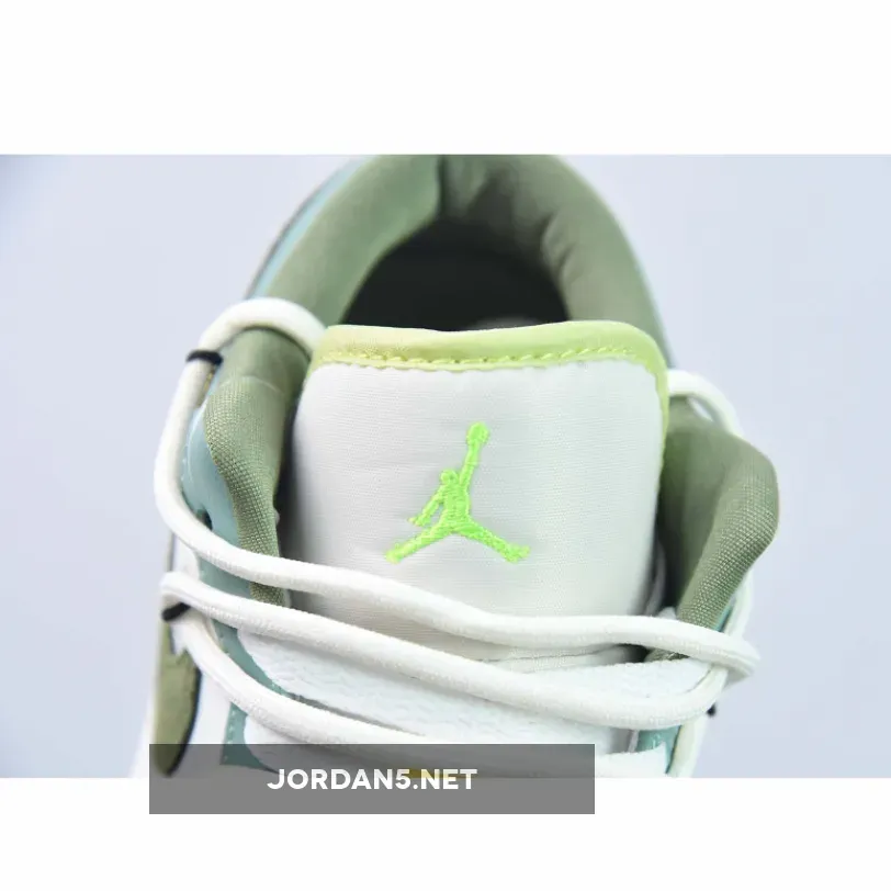 Find your perfect fit with Custom Air Jordan 1 Low Sail White Oil Green on JORDAN5.NET.