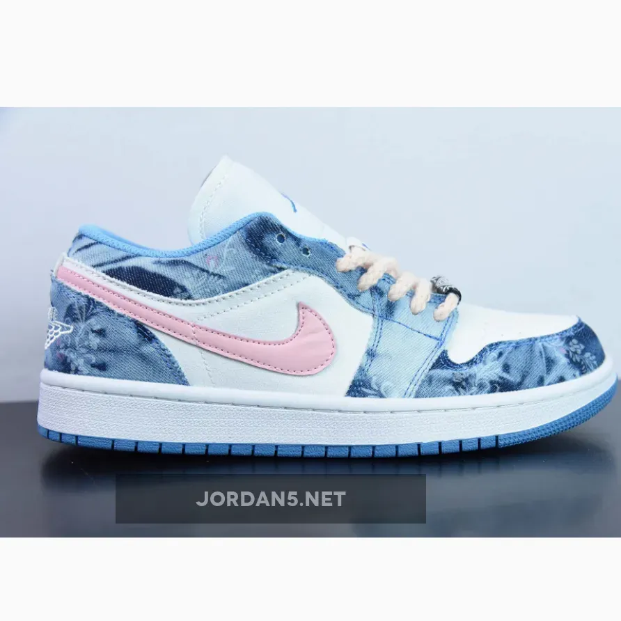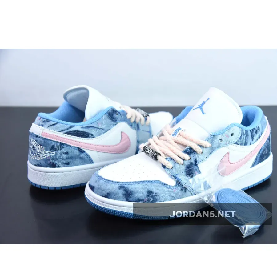 Custom Air Jordan 1 Low Washed Denim/White-Pink – redefine your style with JORDAN5.NET.