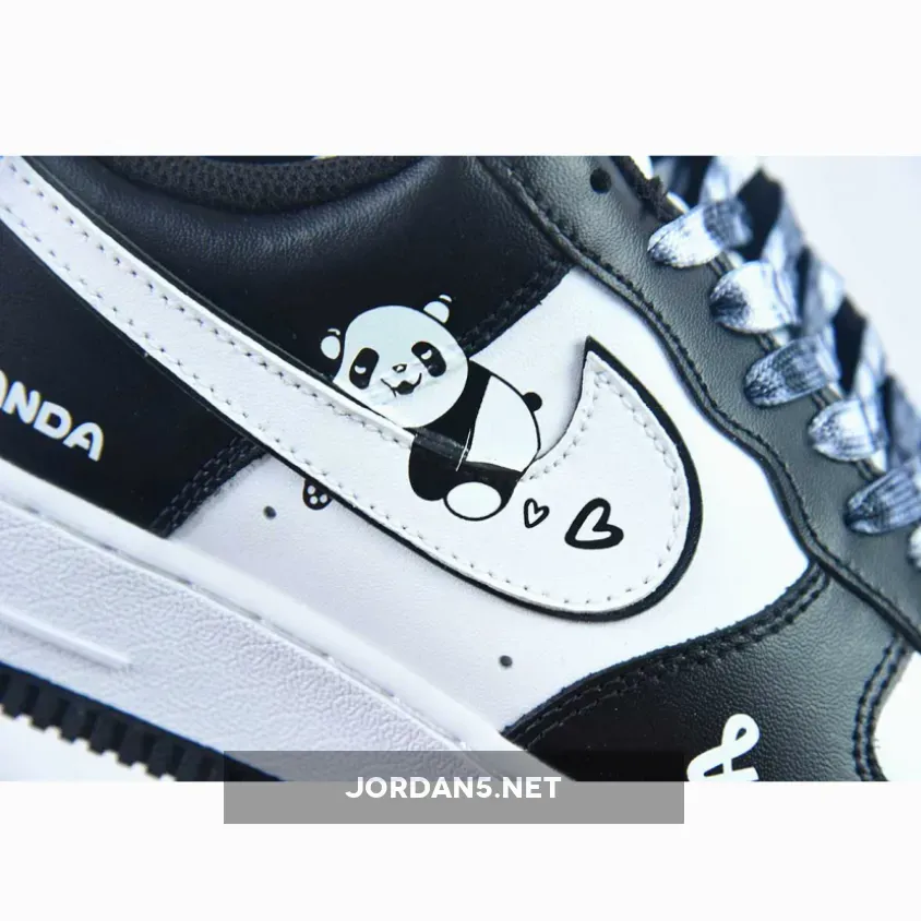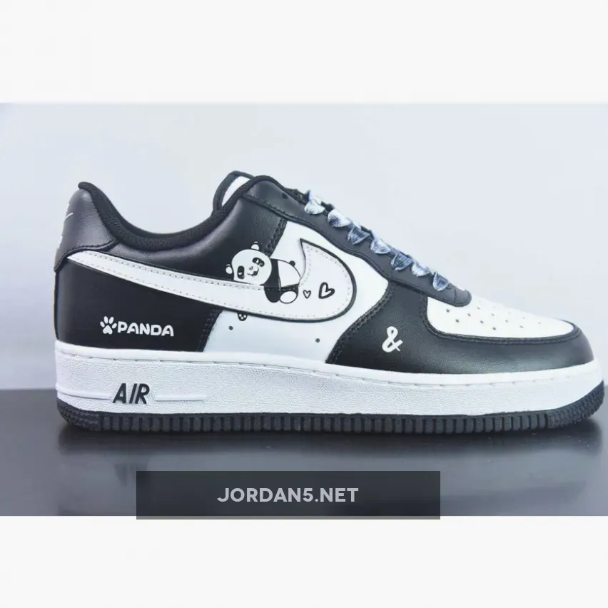 this Air Force 1’s palette is comprised entirely of neutral colors. Echoing the two-toned look of its Peter Moore-designed counterpart, the pair dresses its overlays in black and its unders in a bright white. a panda on the logo and panda lettering on the heel. Save for the Swoosh, which flips what’s expected of the animal-inspired scheme, the adjacent fixtures are similarly reminiscent of the alluded Dunk Low.