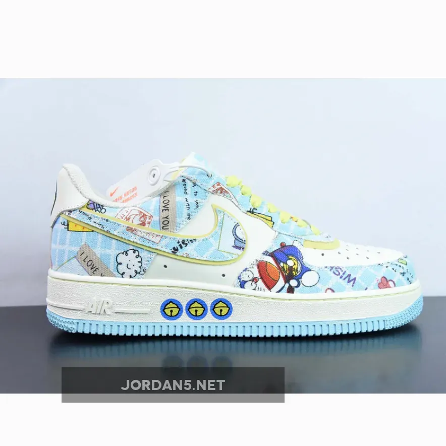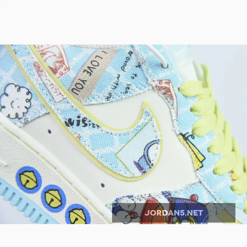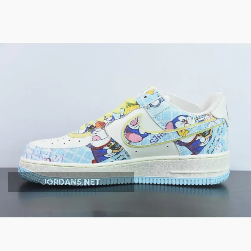 Doraemon x Nike Air Force 1 Low Custom White Blue Yellow – elevate your look with JORDAN5.NET.