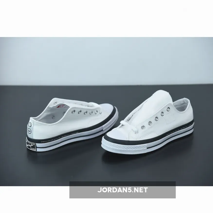 Each low-cut Chuck 70 uses a single-color canvas upper, with the black pair offering white contrast stitching while the white pair keeps things tonal. Heel tabs add Mon and fragment design’s signature motifs, while fragment’s recognizable tooling code details grace each shoe’s extra-thick black foxing on lateral and medial sides alike. Traditional heel badges are spruced up with a duo of fragment hits, and even the two-tone insoles nod to both of the collaborative parties with a veritable laundry list of text graphics. White midsoles with black piping, shiny silver eyelets and classic brown gum outsoles finalize each style.